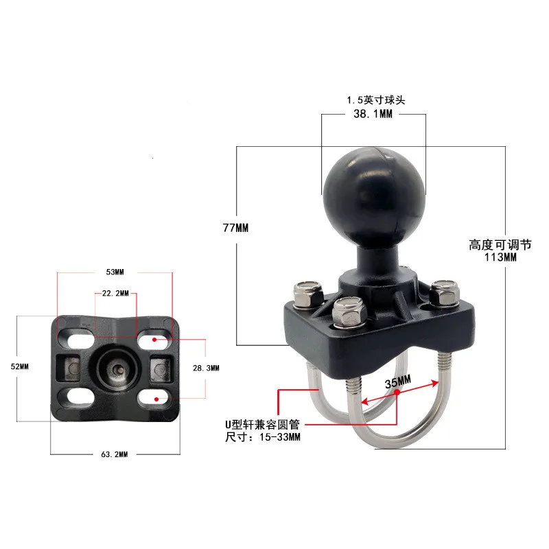Алюминиевый двойной u-болт, руль для мотоцикла, велосипеда, стержень, основание, 1,5 дюйма, шаровая Головка Для Gopro, для Garmin, рыбацкая лодка