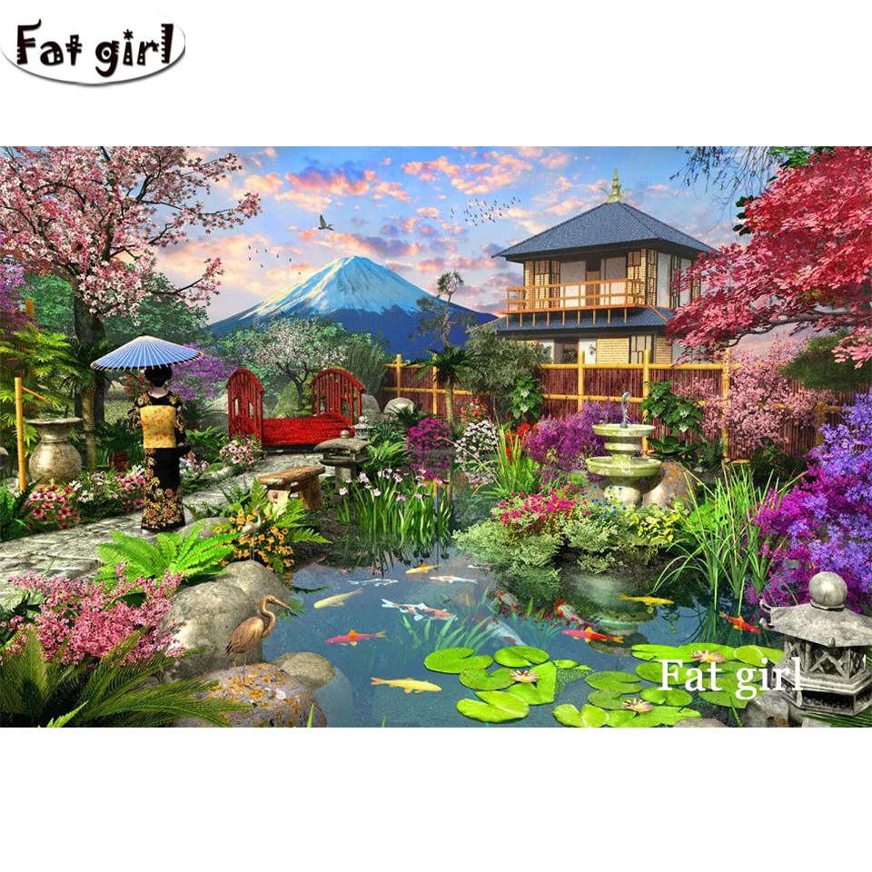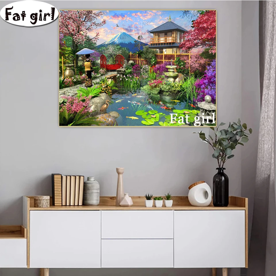 Японская пейзажная живопись, вышивка крестиком, 3D алмазная живопись, крепление Fuji, вышивка, мозаика, сад, квадратныйкруглый, домашний декор