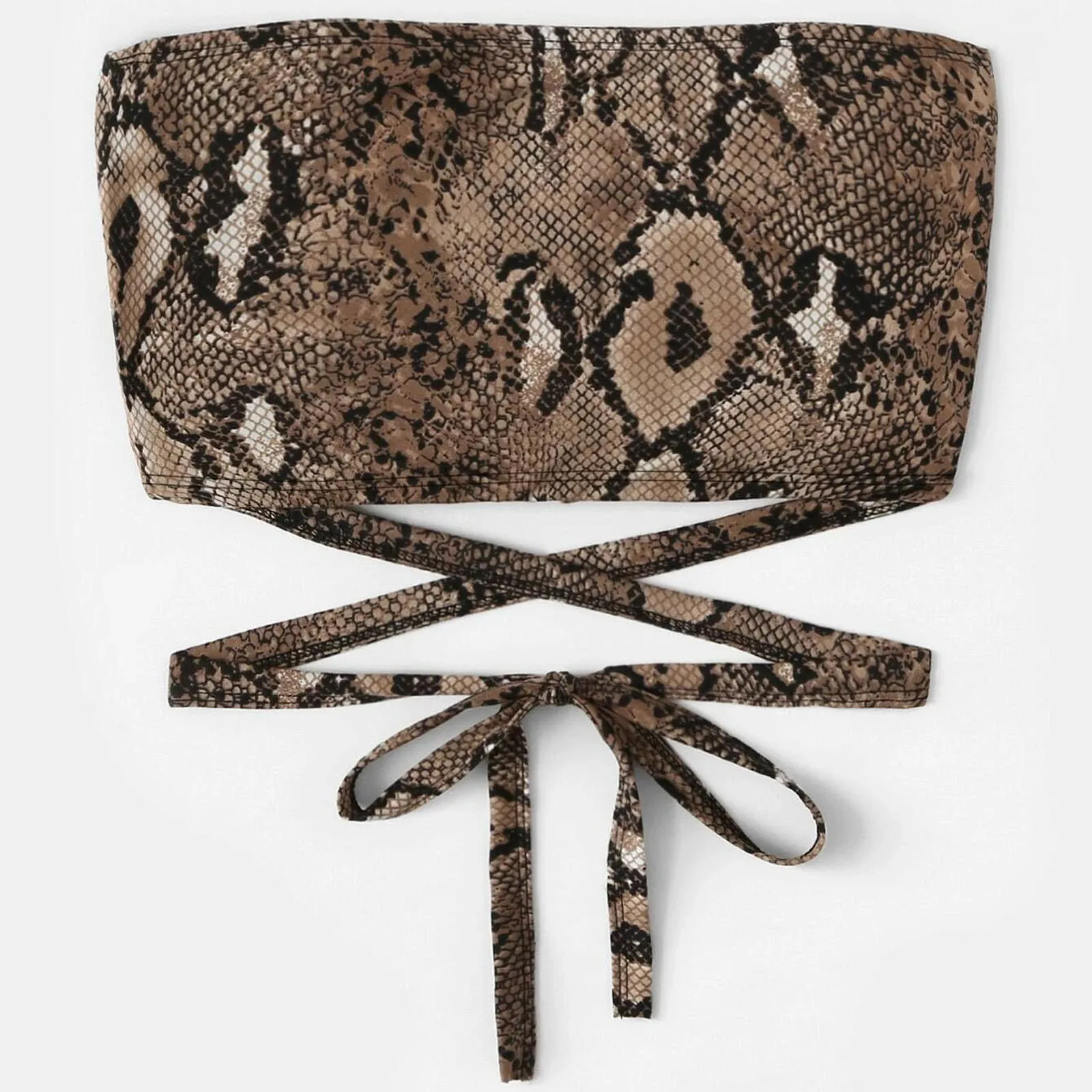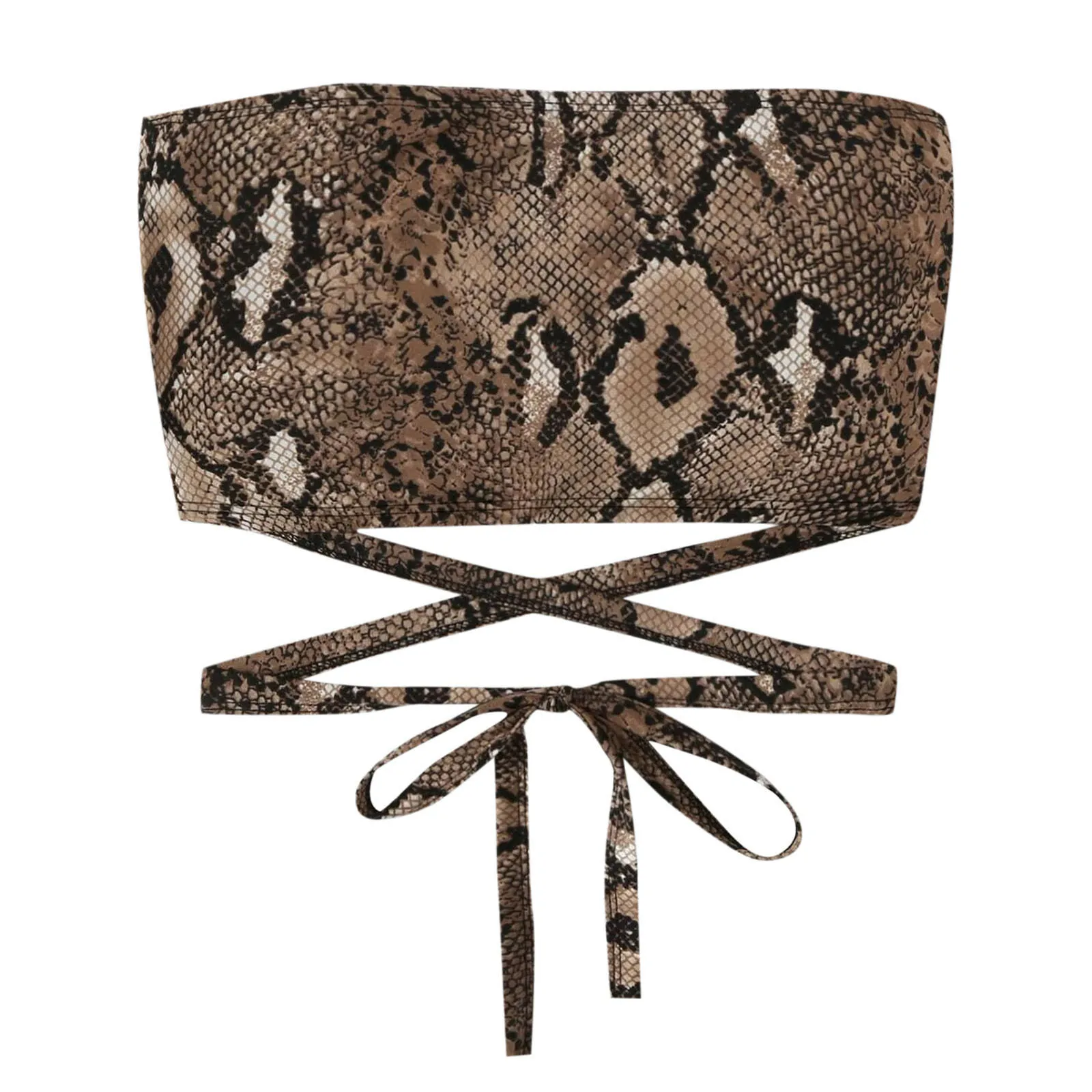 Летний пикантный женский бюстгальтер без бретелек, обтягивающий Бюстгальтер-бандо, укороченные топы 2021, модный топ со змеиным принтом на бретелях, Клубная одежда Вечерние