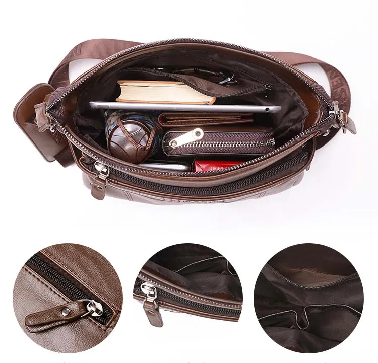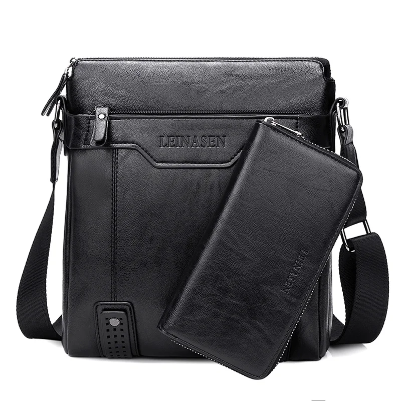 Feature1Men's Shoulder Bag Leather Bag with Clutch