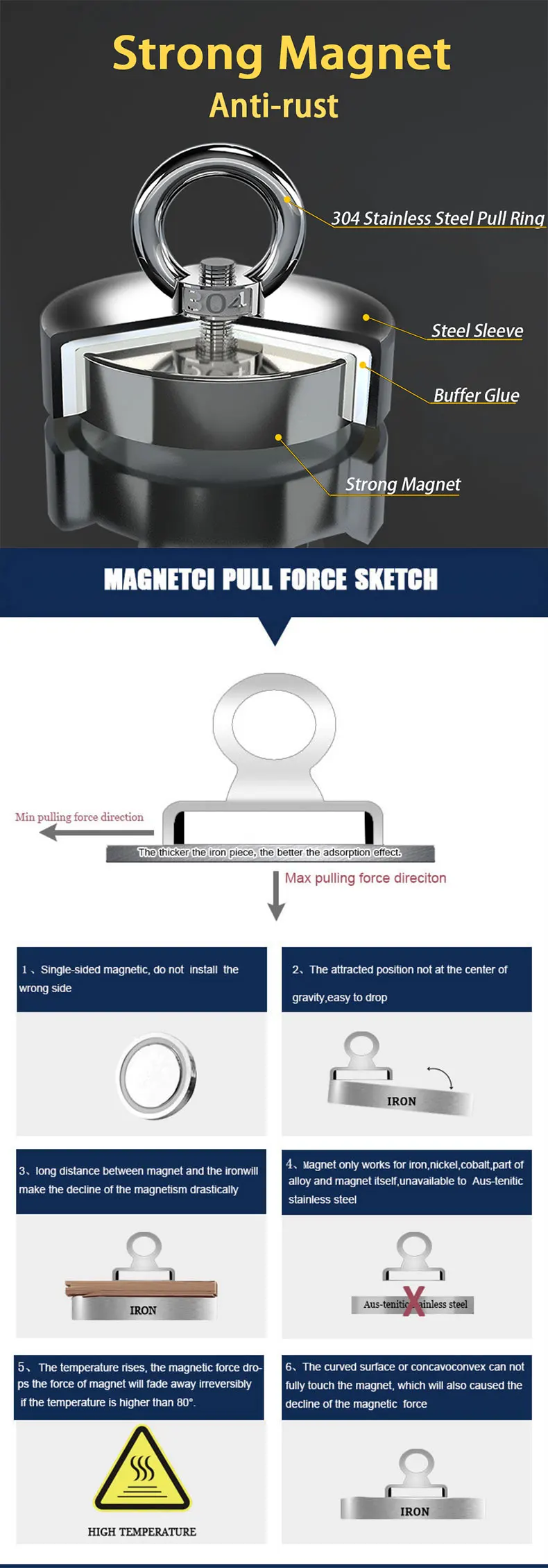 Мощный круглый неодимовый магнит, мощный, для поиска крючков, морское рыболовное снаряжение, держатель, вытяжной монтажный прибор с кольцом