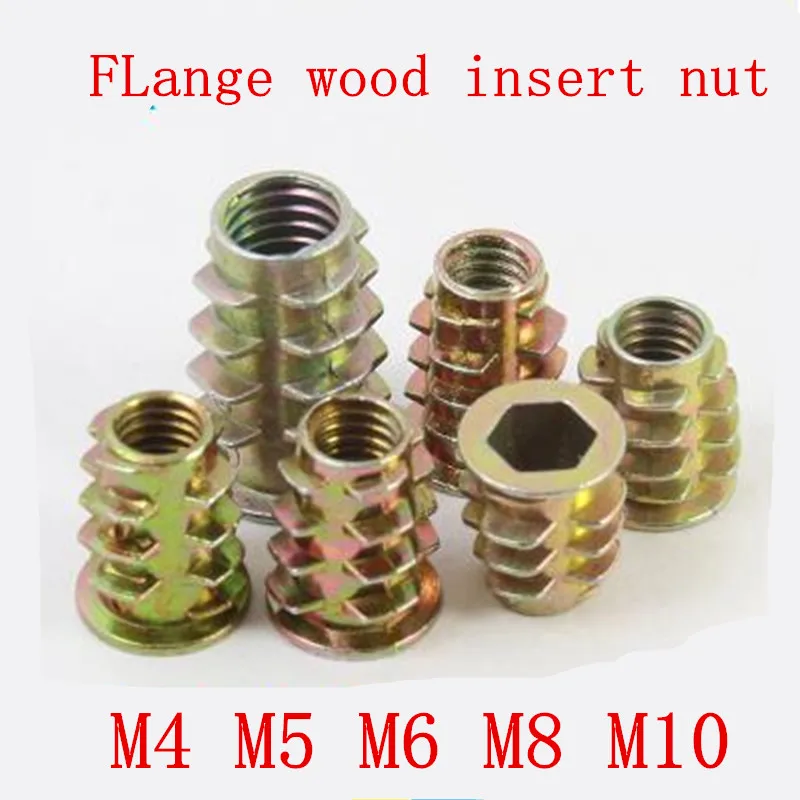 10-50 шт. M4 M5 M6 M8 M10 резьба из цинкового сплава для деревянная вставка гайки с фланцем Шестигранная головка диска мебельных шурупов