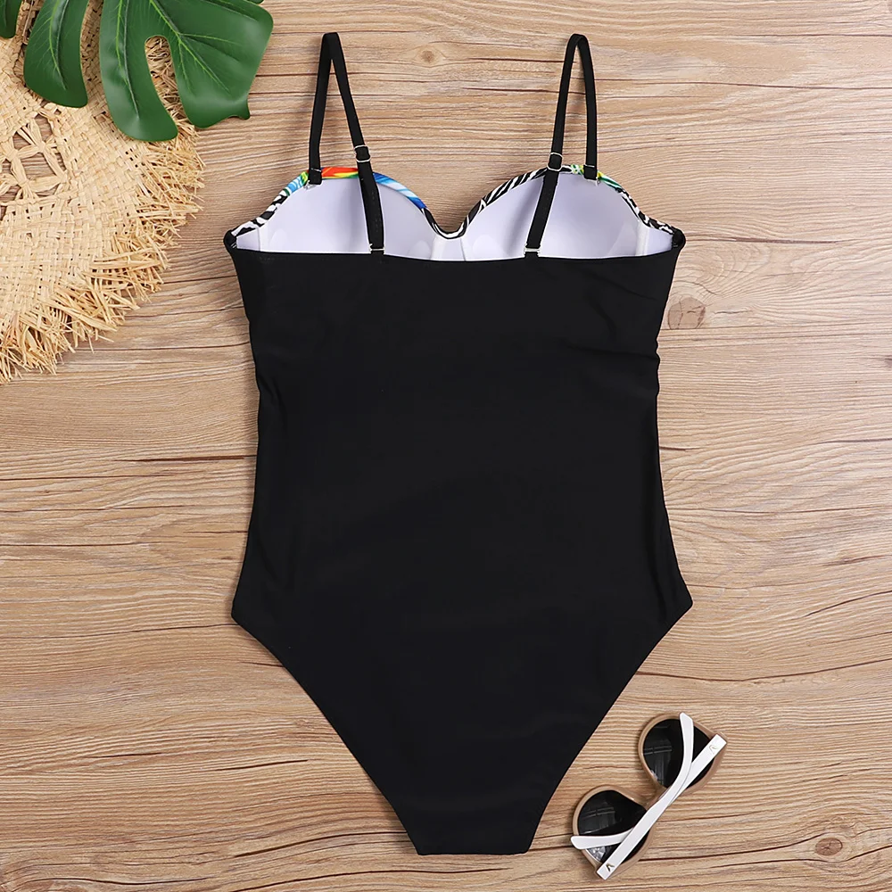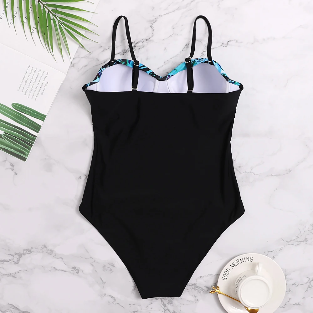 Новый цветочный сексуальный цельный купальник большого размера с пу...