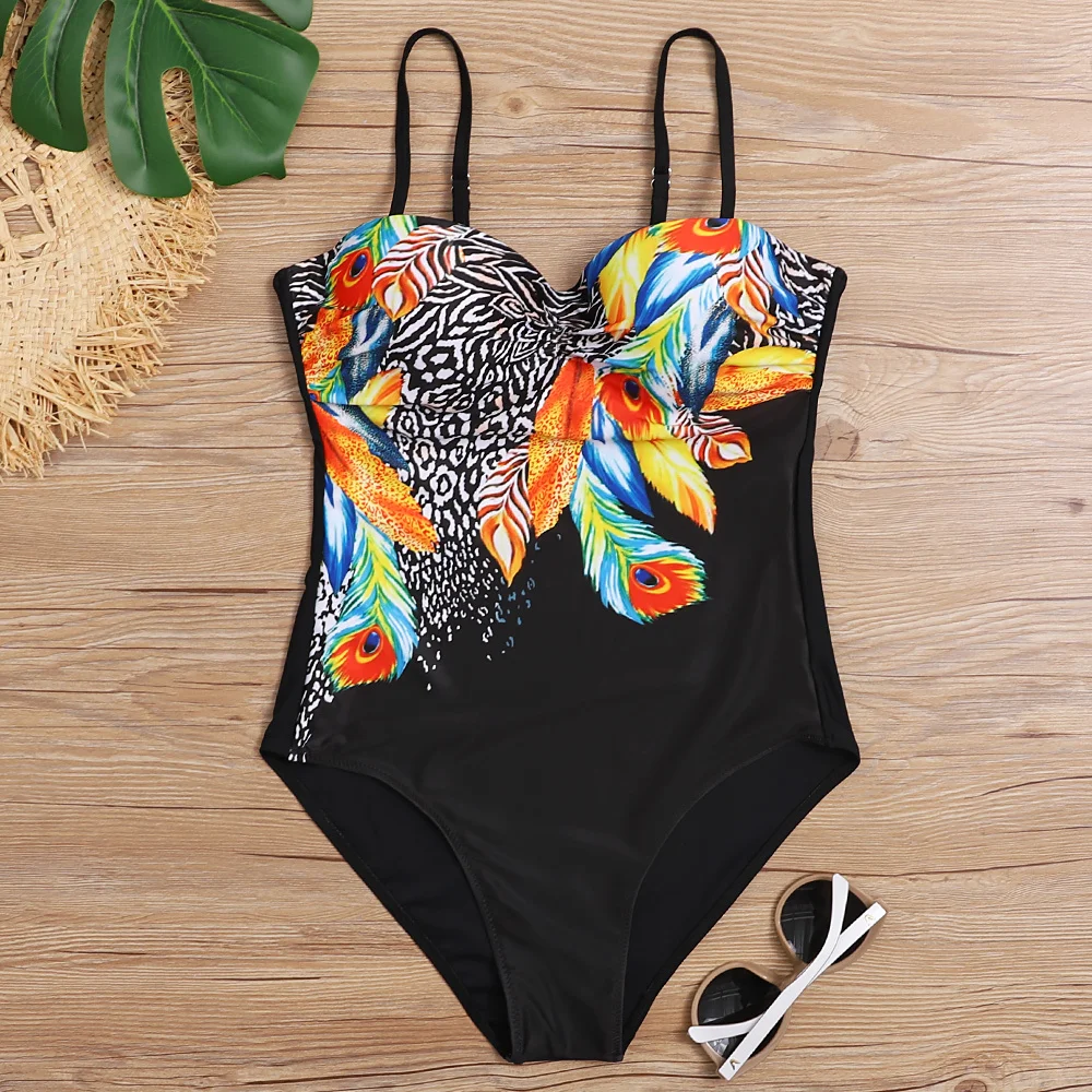Сексуальные цельные большие купальники с принтом, закрытые женские ...