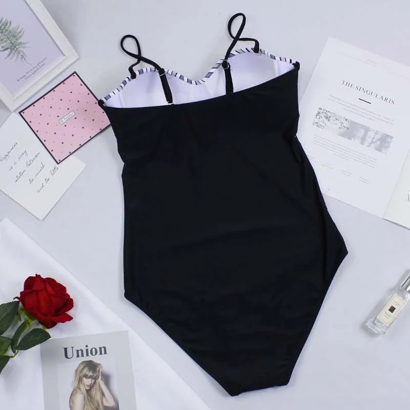 Летний сексуальный слитный купальник с черным принтом, закрытый жен...