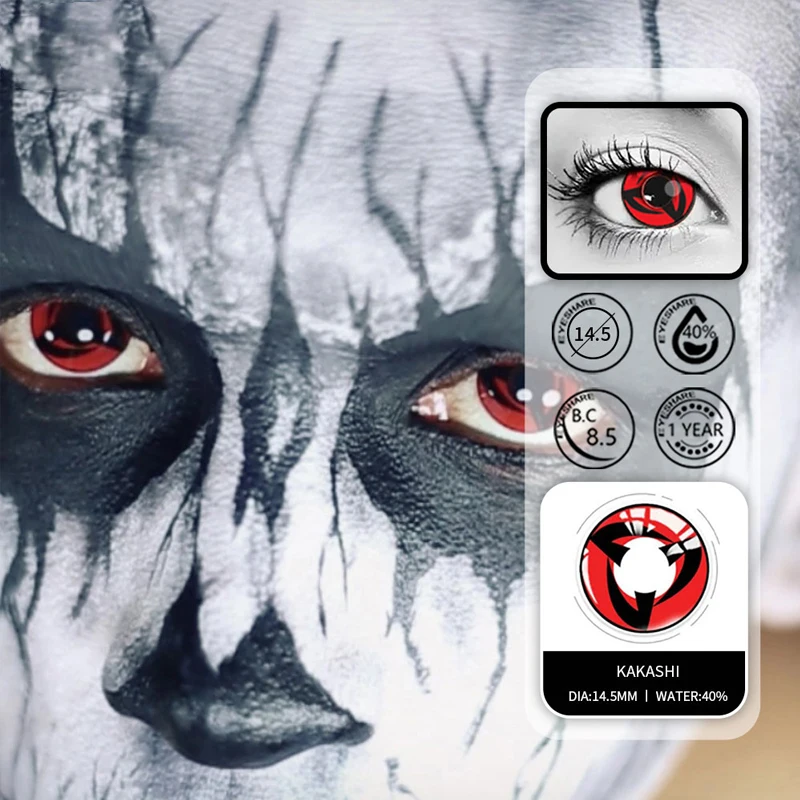 Цвет: Косплей Диаметр: 14,5 мм Содержание воды: 40% Основание кривое: 8,5 мм Толщина центра: 0,06 мм Срок службы: 1 год • Мощность диапазон:-0,00 Материал линз: Poly-2HEMA Твердость линз: мягкая Посылка включает в себя: 1 пара контактных линз + 1 чехол бесплатно