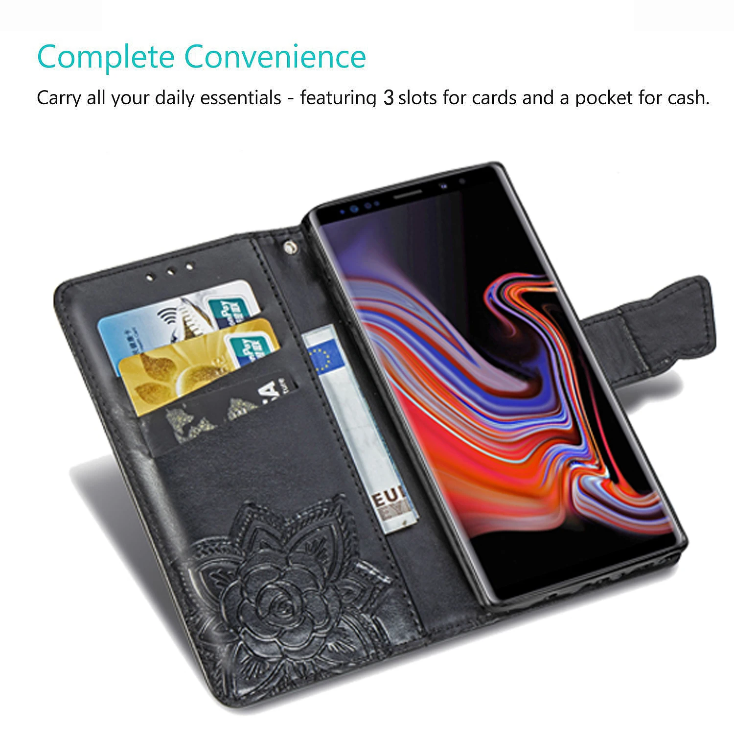 Милый чехол-бабочка для Samsung Galaxy Note 9 (6,4 дюйма), кожаный чехол-книжка, черный SM-N960F, Note9 N960, SC-01L SCV40