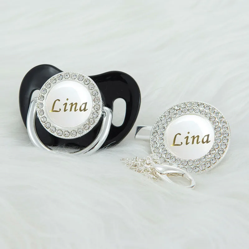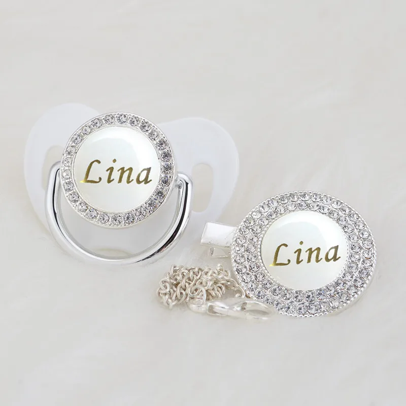 Индивидуальное Имя MIYOCAR, серебряная Соска с блестками и зажимом для соски, без бисфенола А, пустышка с блестками, уникальный подарок, детский душ