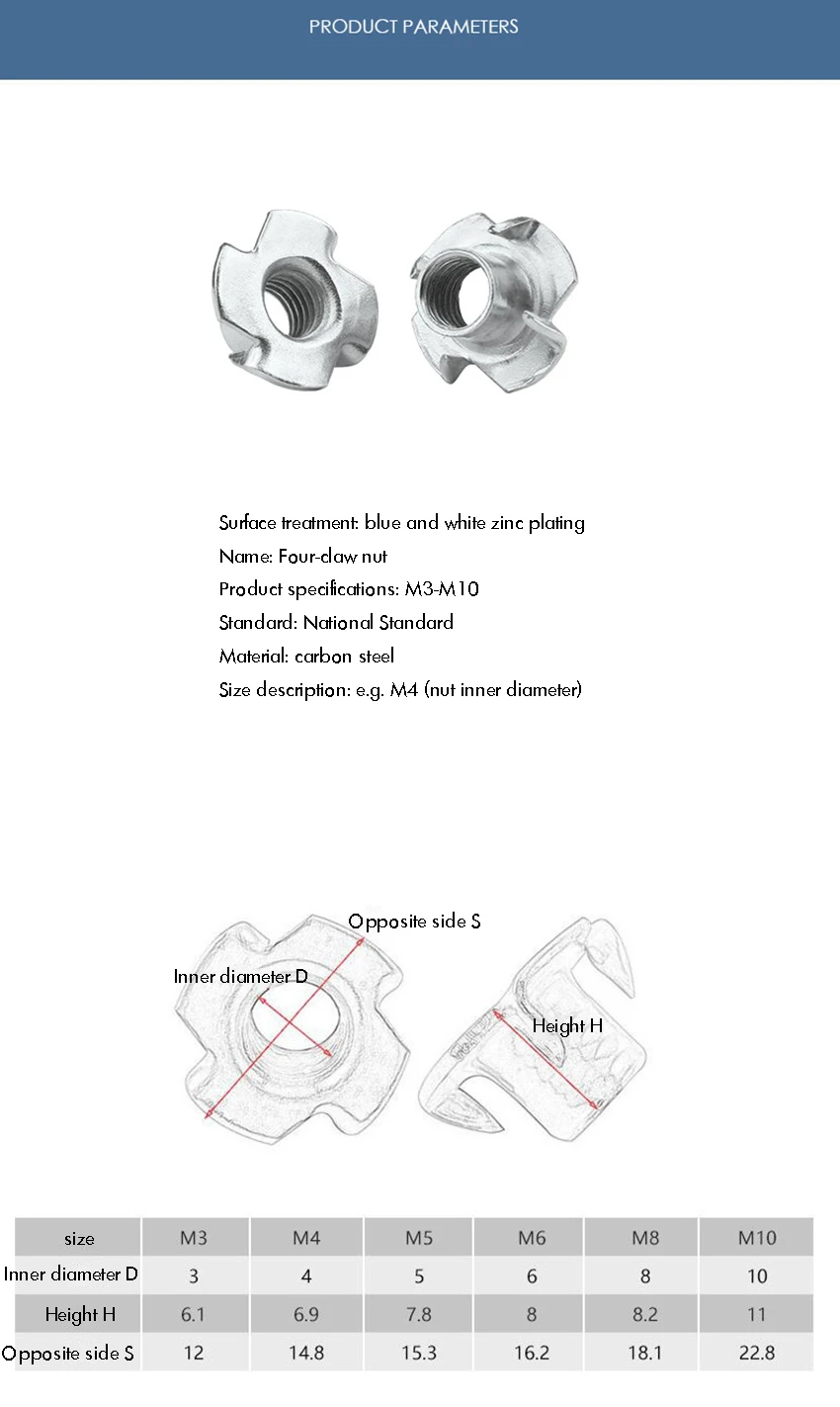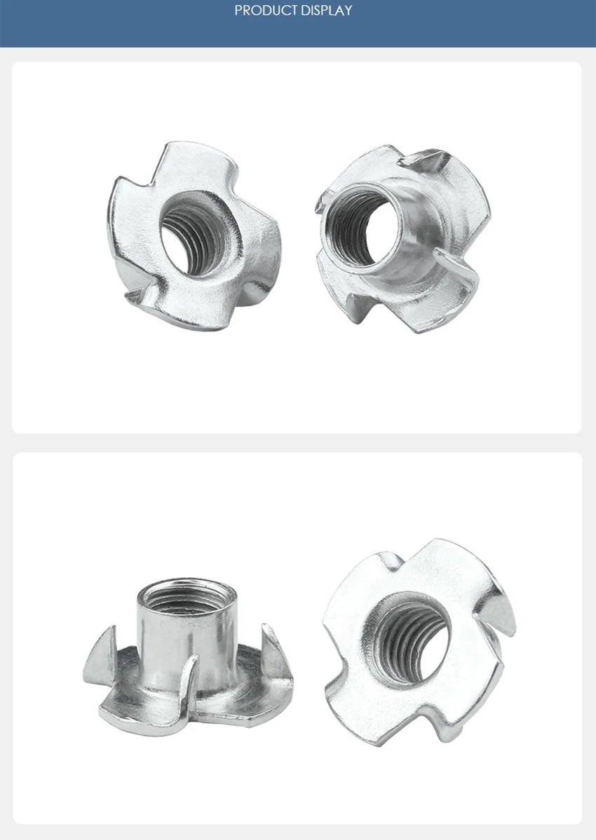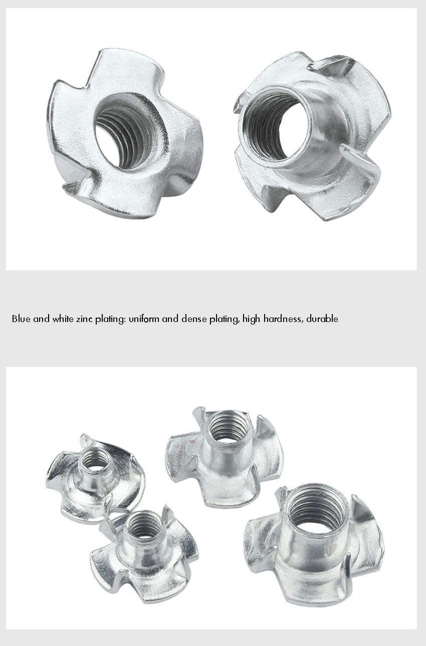 Оцинкованная Т-образная гайка M3 с четырьмя зажимами, для деревообр...
