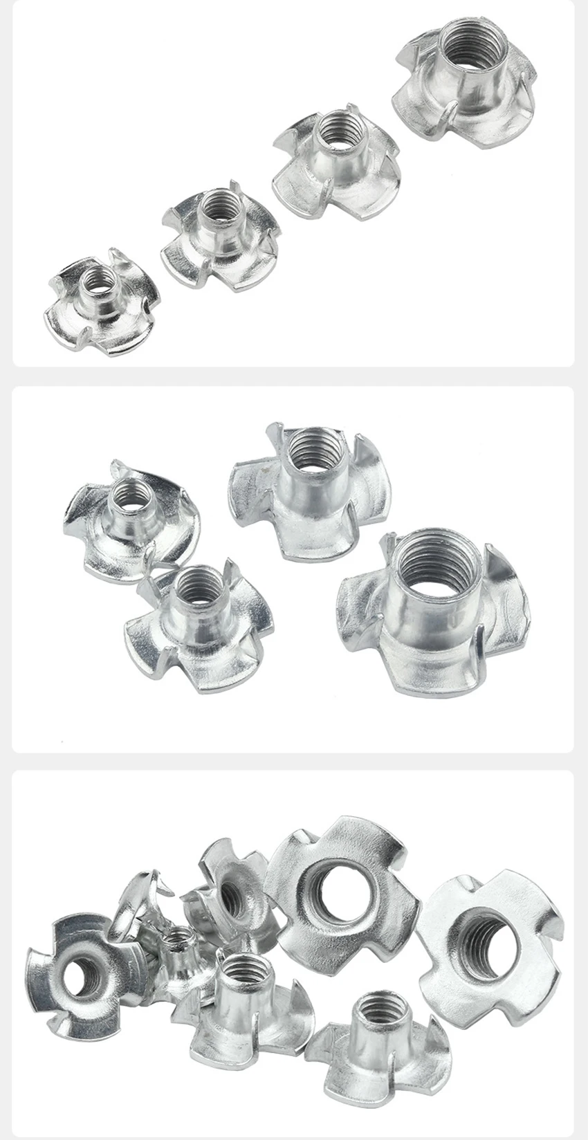 Оцинкованная Т-образная гайка с четырьмя зажимами, M3 M4 M5 M6 M8 M...