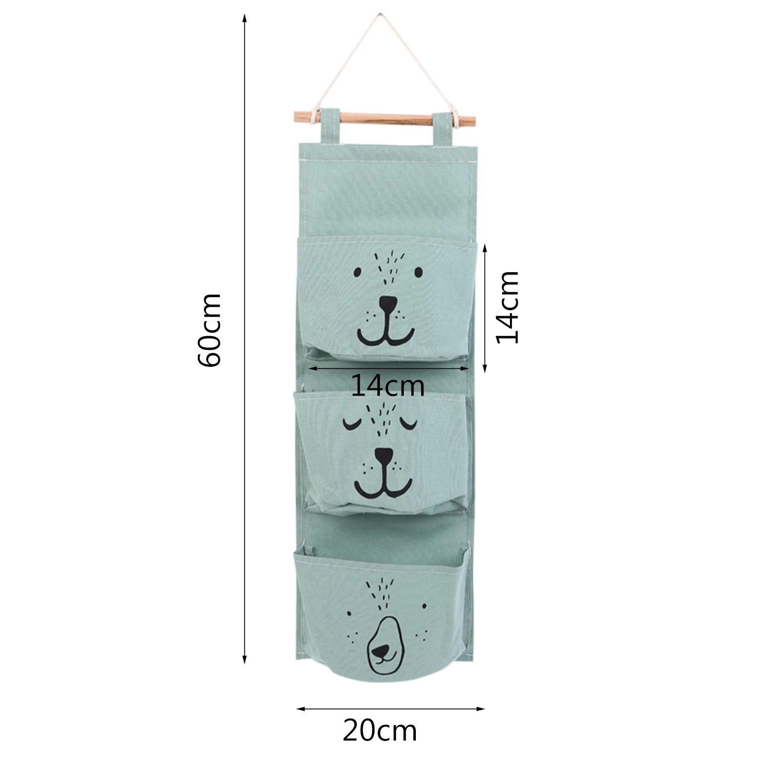 Симпатичная настенная сумка для хранения одежды с 3 карманами, льняной Органайзер, Детская сумка для хранения, органайзер для комнаты, домашняя сумка N50