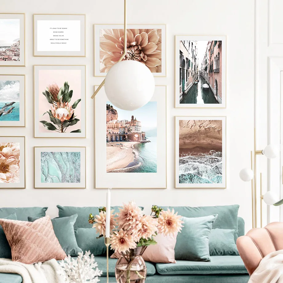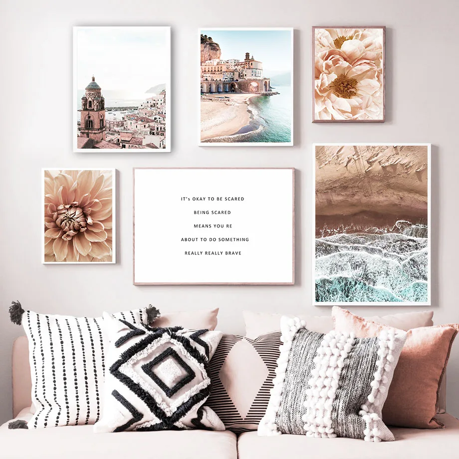 Скандинавский розовый цветок розы художественная стена с цитатой Ка...