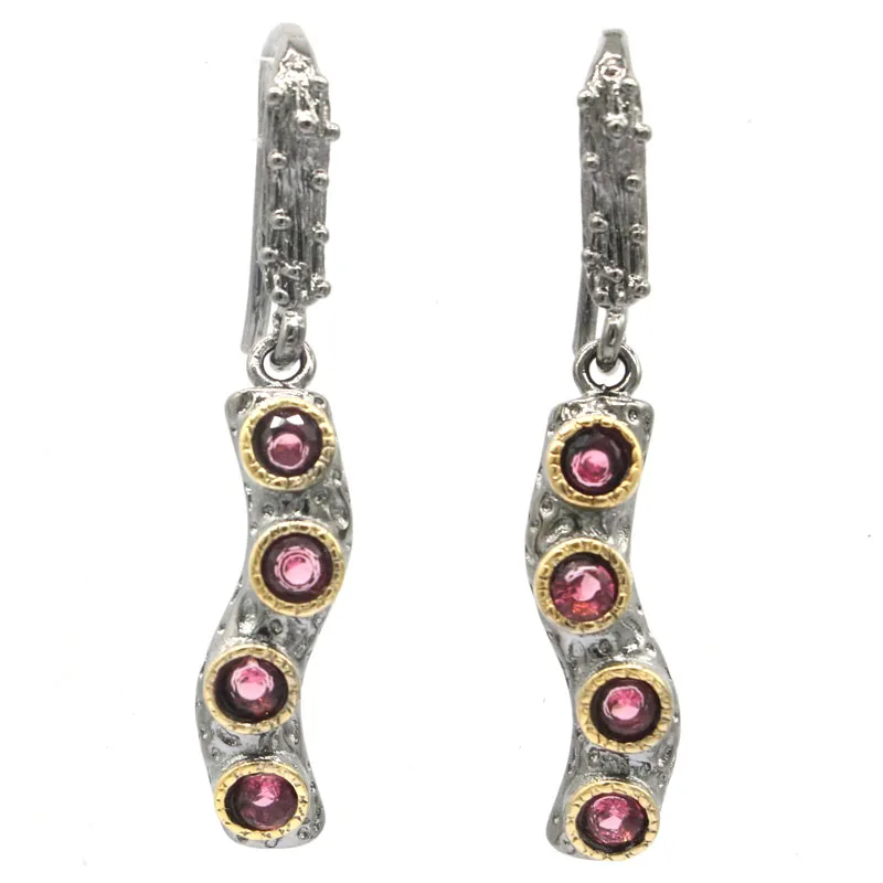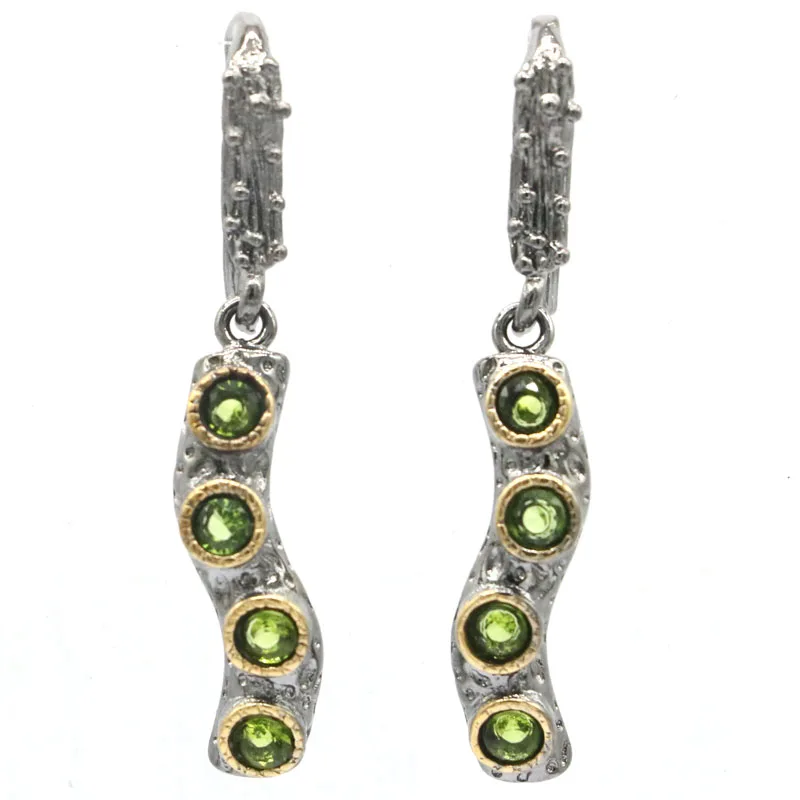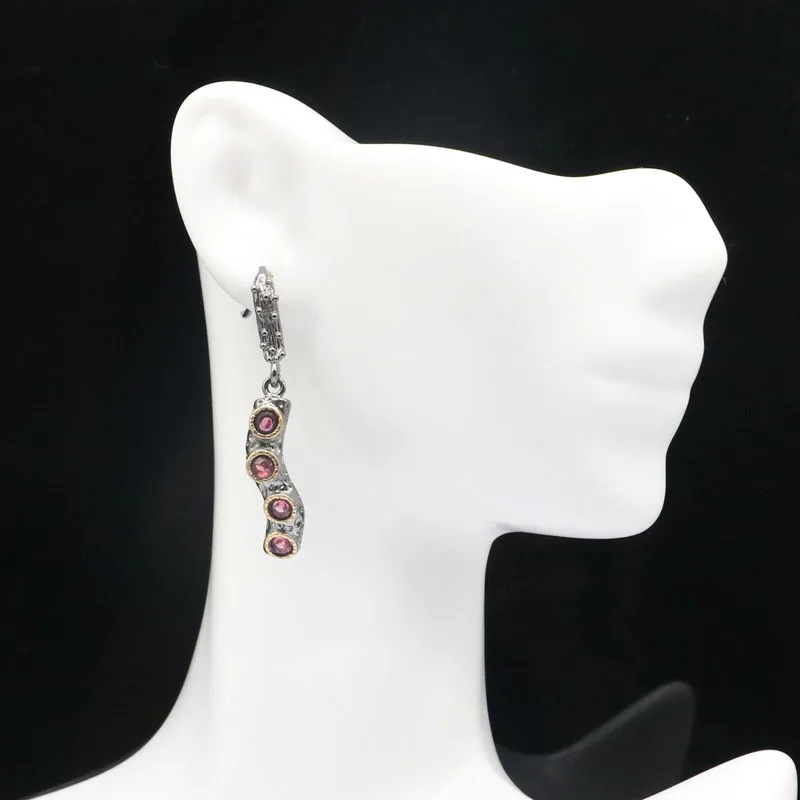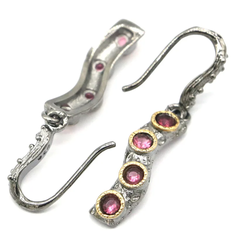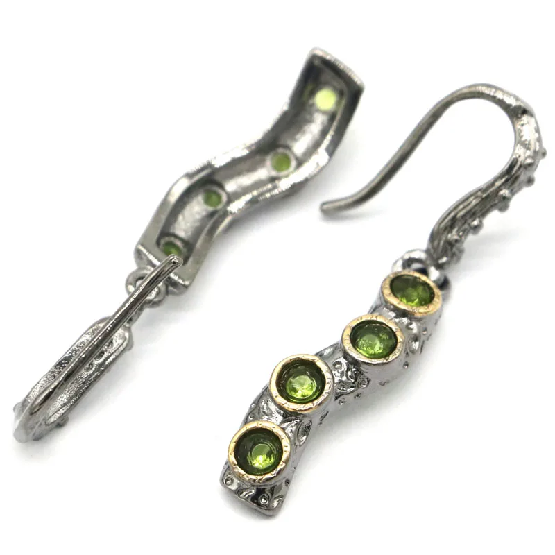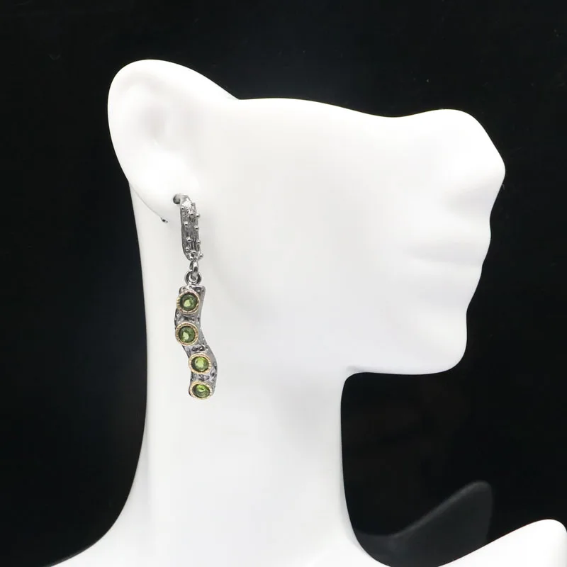 Неоготические серьги из металла, Винтажные Ювелирные украшения с зеленым Перидотом, розовым турмалином и черными серебряными вставками в стиле панк, 5,1 г, 40x6 мм