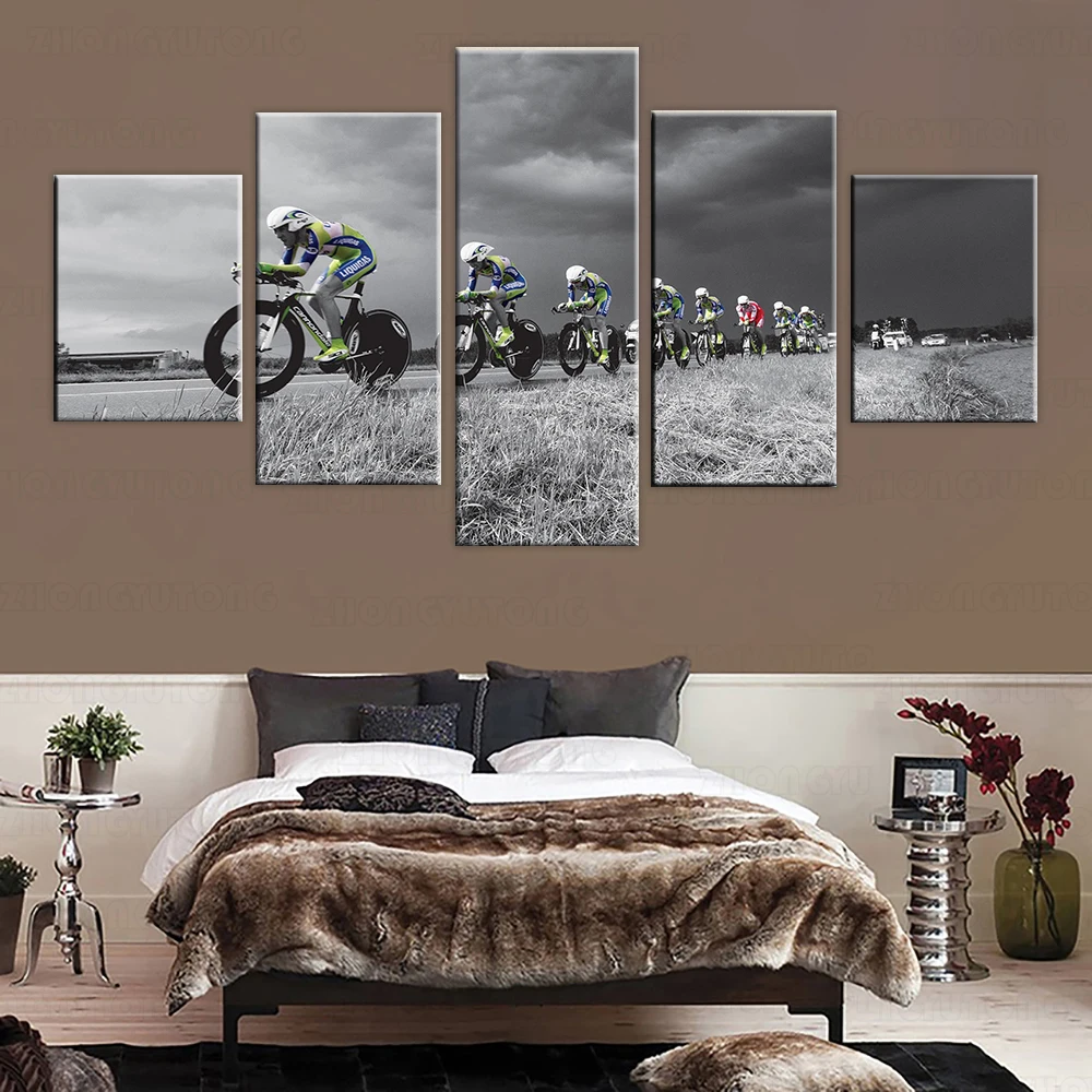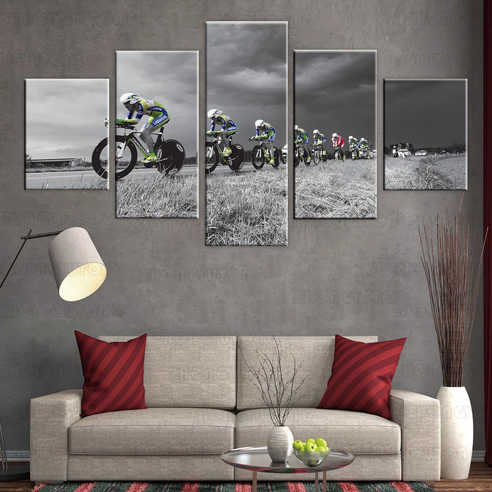Холщовая рама с HD-печатью, современная картина для гостиной, 5 панелей, настенный художественный постер для езды на велосипеде, украшение для дома, модульные картины