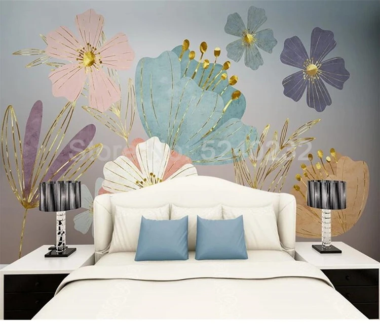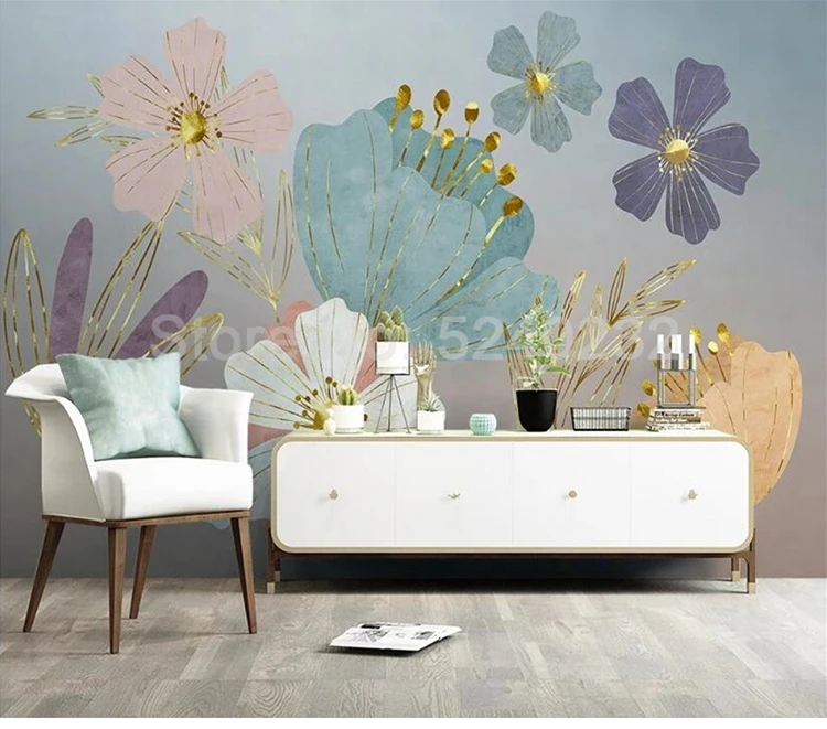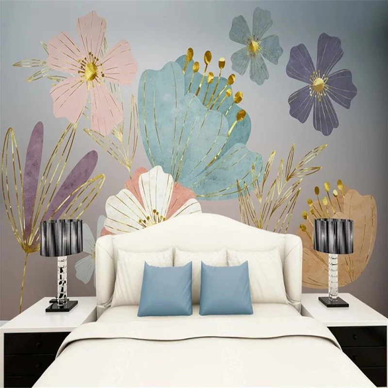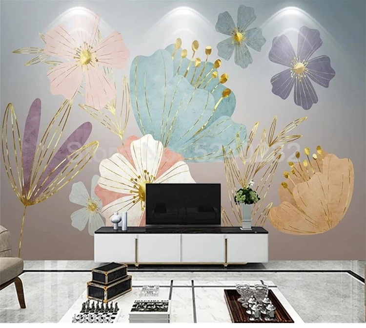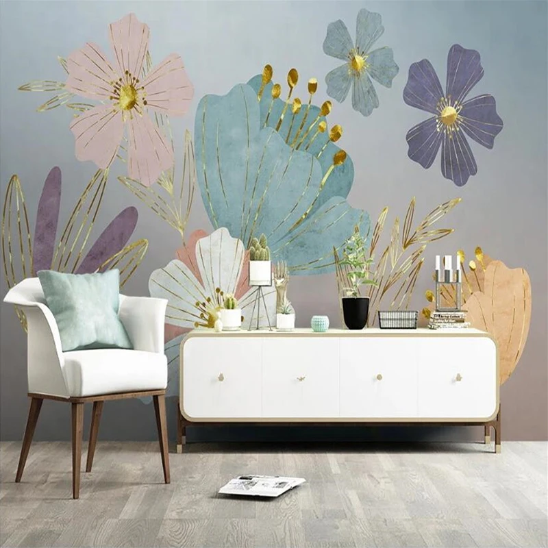 Пользовательские 3D Настенные обои современный минималистский роскошный растительный цветок гостиная диван тв фоновое украшение Papel де Parede