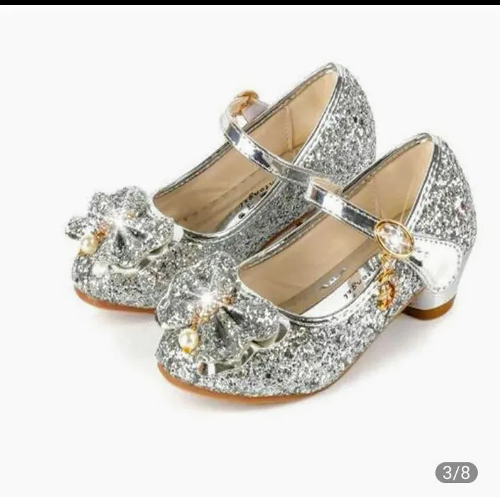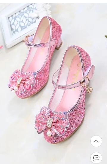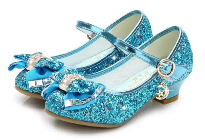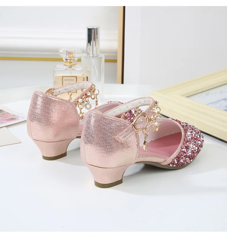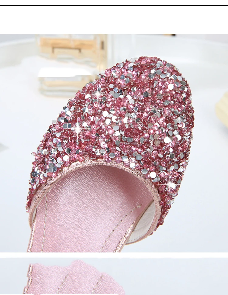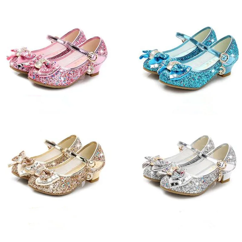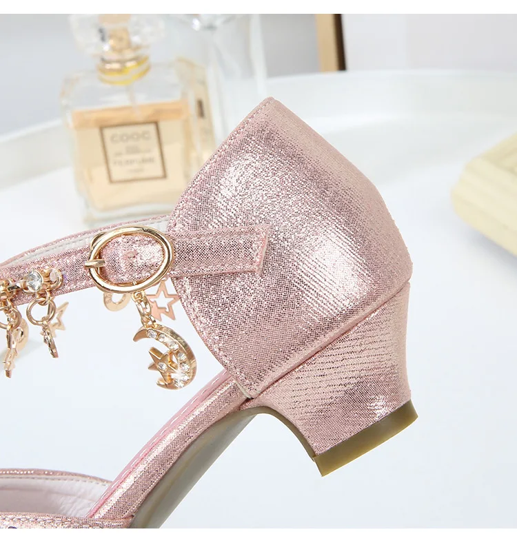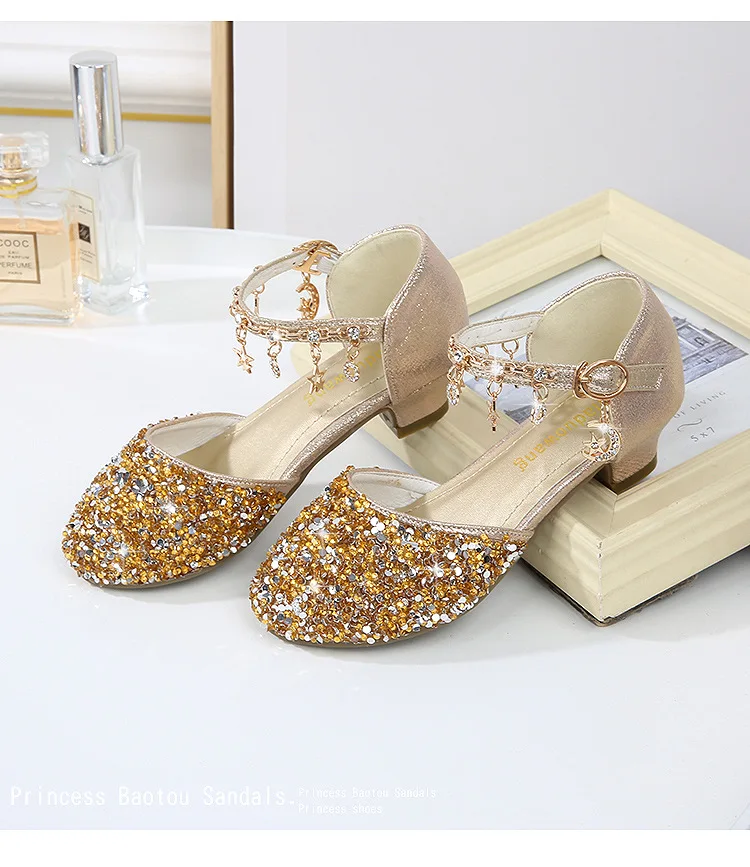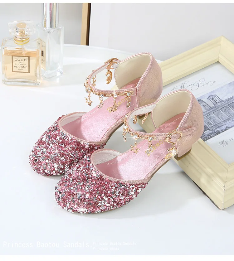 Сандалии детские из кожи с блестками, босоножки принцессы на высоком каблуке, обувь для вечеривечерние, лето