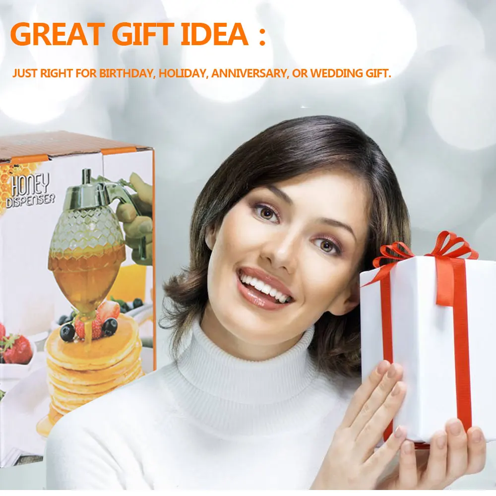 2. В Форме забавного, привлекательного дизайна сот. Этот материал-светильник, но прочный и долговечный. Заполните дозатор медом или аналогичными жидкостями. Закрутите крышку, затем нажмите на центр. Он начнет вытекать снизу. Отпустите центральный кусок и жидкость перестанет течь. Эта гравитационная система подачи пищи-это лучший способ, чтобы ваш любимый соус был готов.