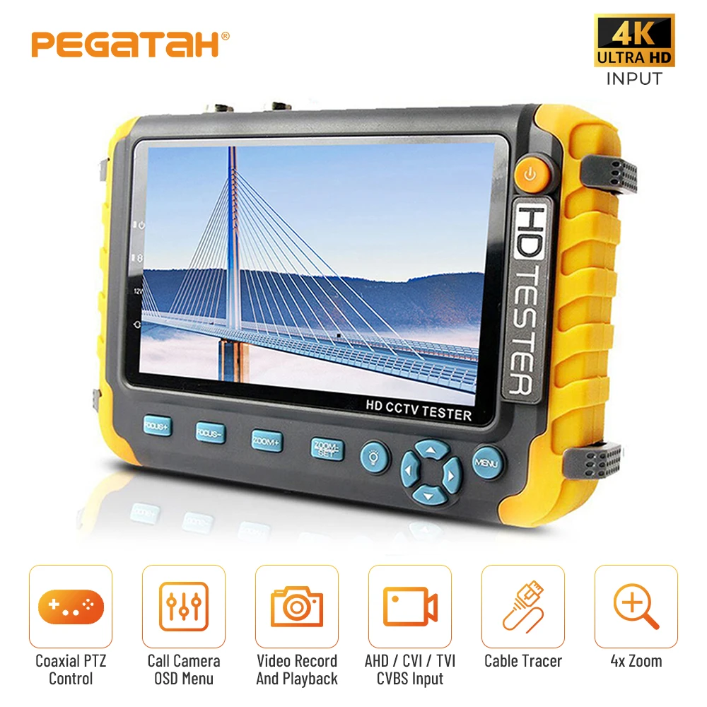 Тестер камеры видеонаблюдения, 5 дюймов, 8 Мп, AHD, TVI, CVI, CVBS, портативный монитор, тестер с контролем VGA, PTZ