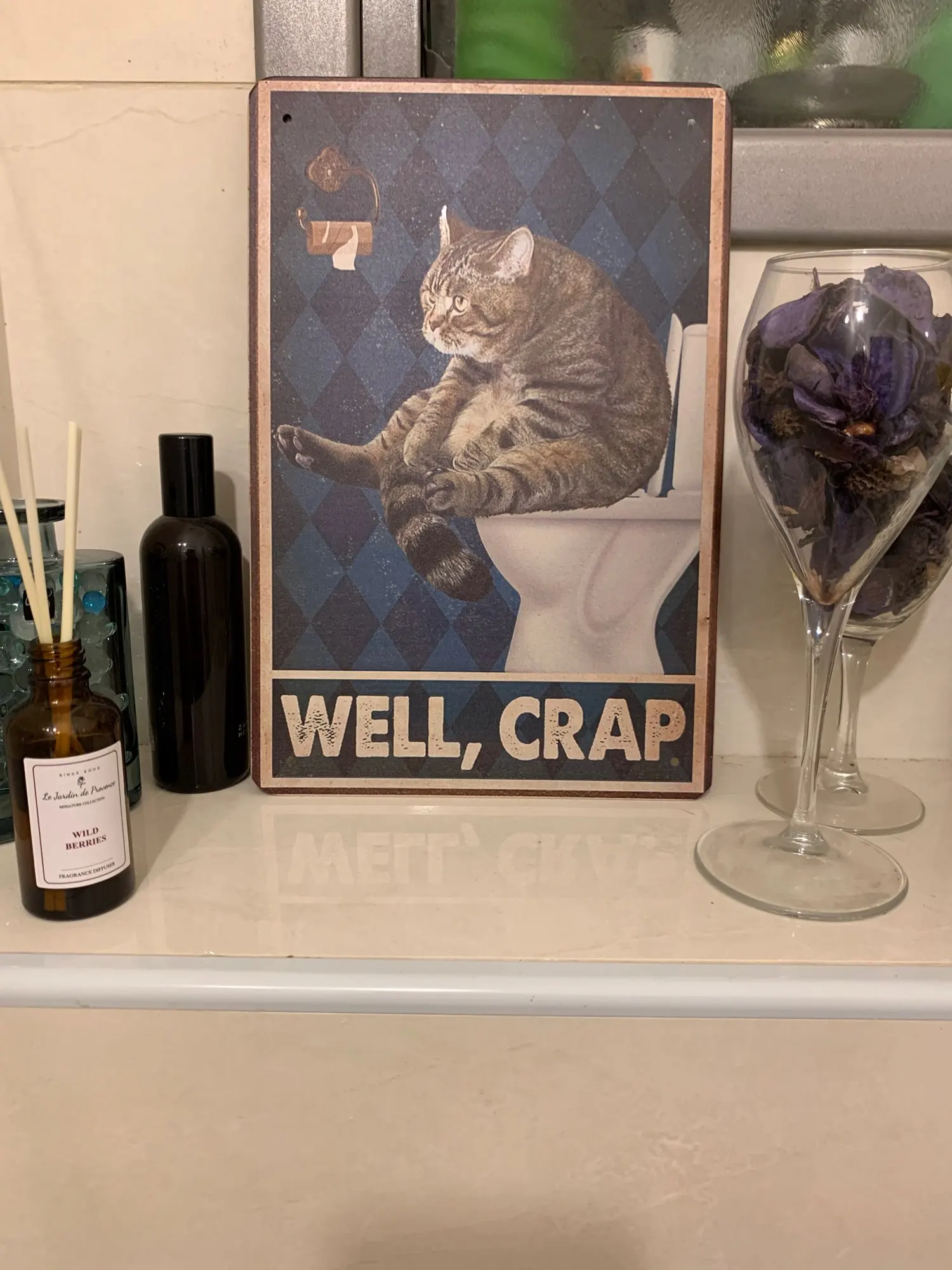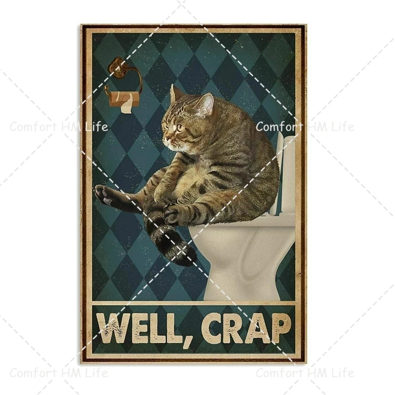 Винтажный постер с изображением кошки в уборной, Забавный металлический жестяной знак, Настенный декор, мужская пещера, металлические знаки в стиле ретро