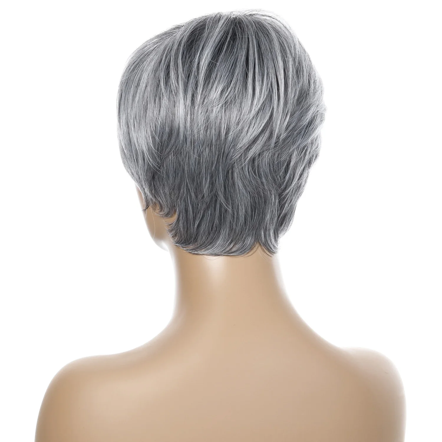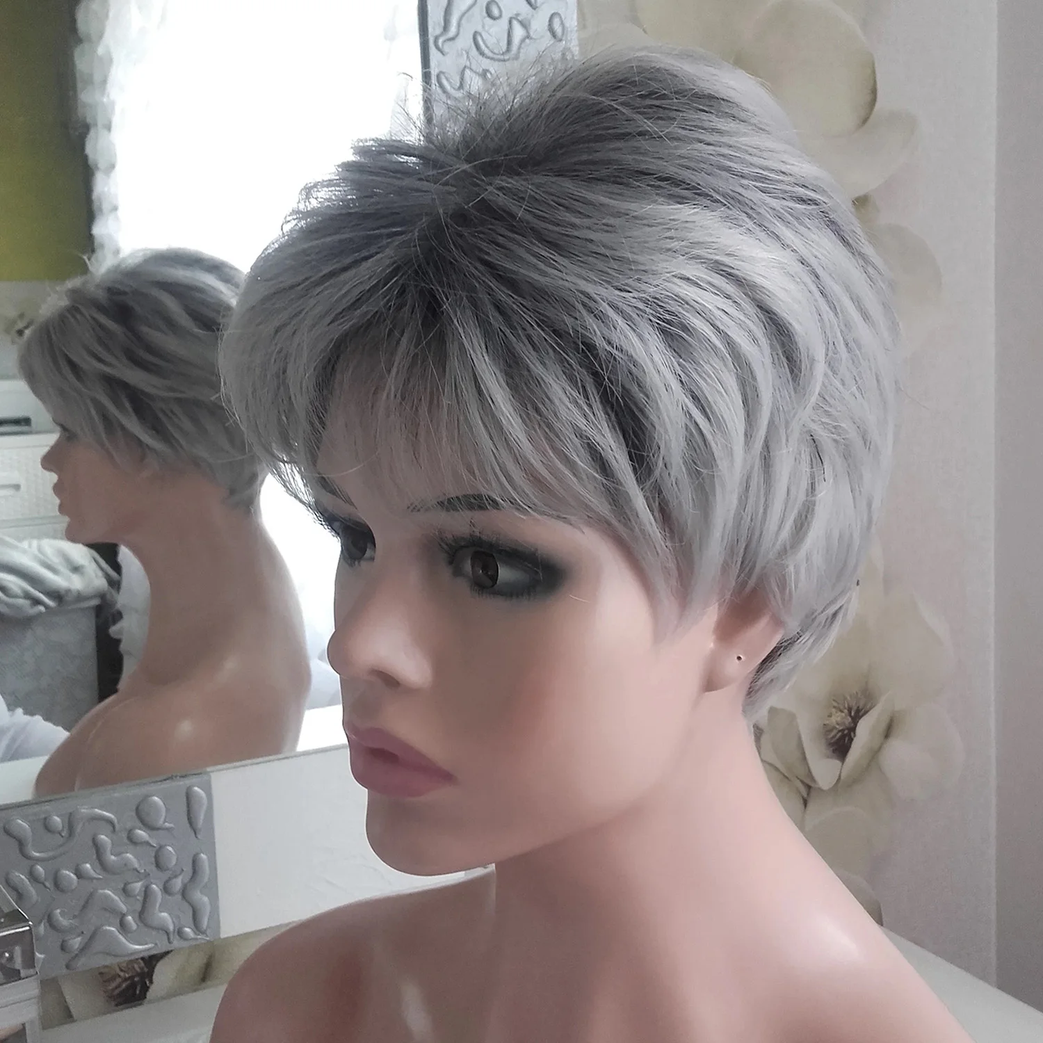 Парик для женщин, синтетический короткий парик с челкой, седые волосы, термостойкие волосы, парики для ежедневного использования