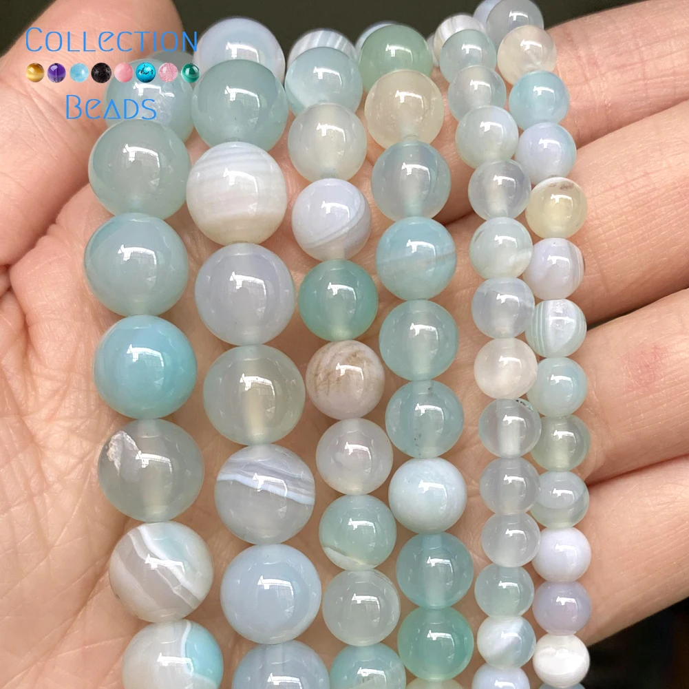Круглые бусины из натурального камня полосатые Агаты для изготовлен...