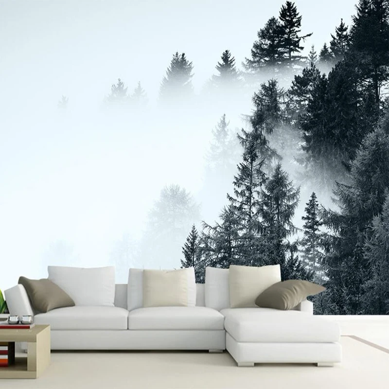 Пользовательские Настенные обои китайский Стиль Ретро Художественный лес туман горный Фреска Гостиная диван Спальня фон стены Стикеры