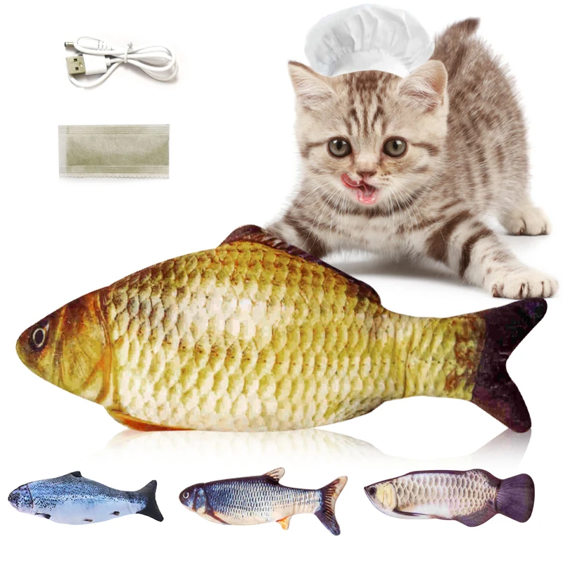 Электронная игрушка для кошек, движущаяся рыба, мягкая переворачивающаяся плюшевая игрушка, 3D Рыба с электрической зарядкой через USB, имитация игры, игрушка для кошачьей мяты для домашних животных