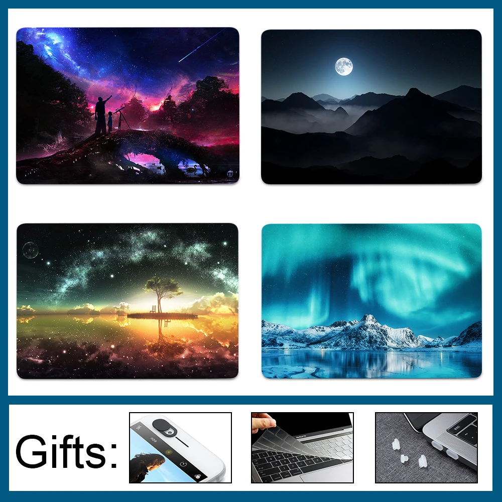 Посылка включает в себя:1 * чехол для Macbook (1 * Топ с принтом + 1 * кристально прозрачный нижний чехол)1 * чехол для веб-камеры(Подарок)1 * Прозрачный чехол для клавиатуры(Подарок)1 * набор прозрачных заглушек для пыли(Подарок)