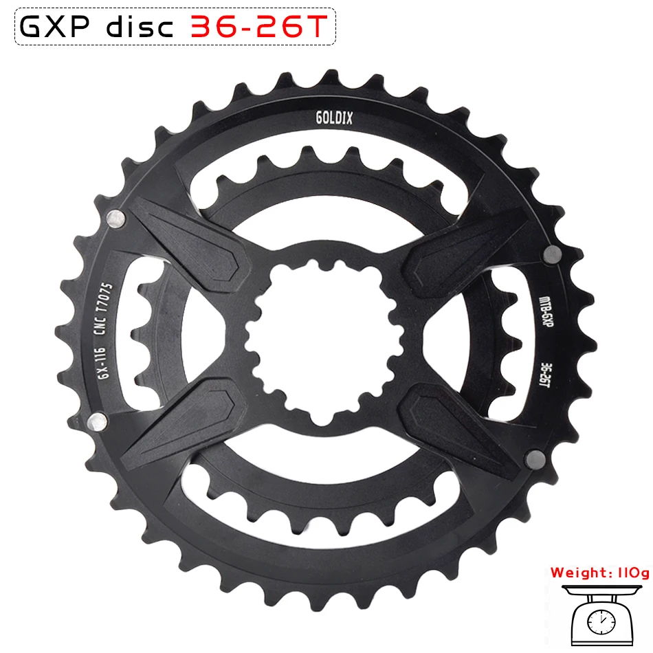 Марка: GOLDIXМатериал: 7075 T6 CNC алюминиевый ЛегионSpezifikationen: 36T-26T / 38T-28TFarbe: schwarzAnwendbar zu GXP XX1 X9 XO X01 kurbelgarnitur