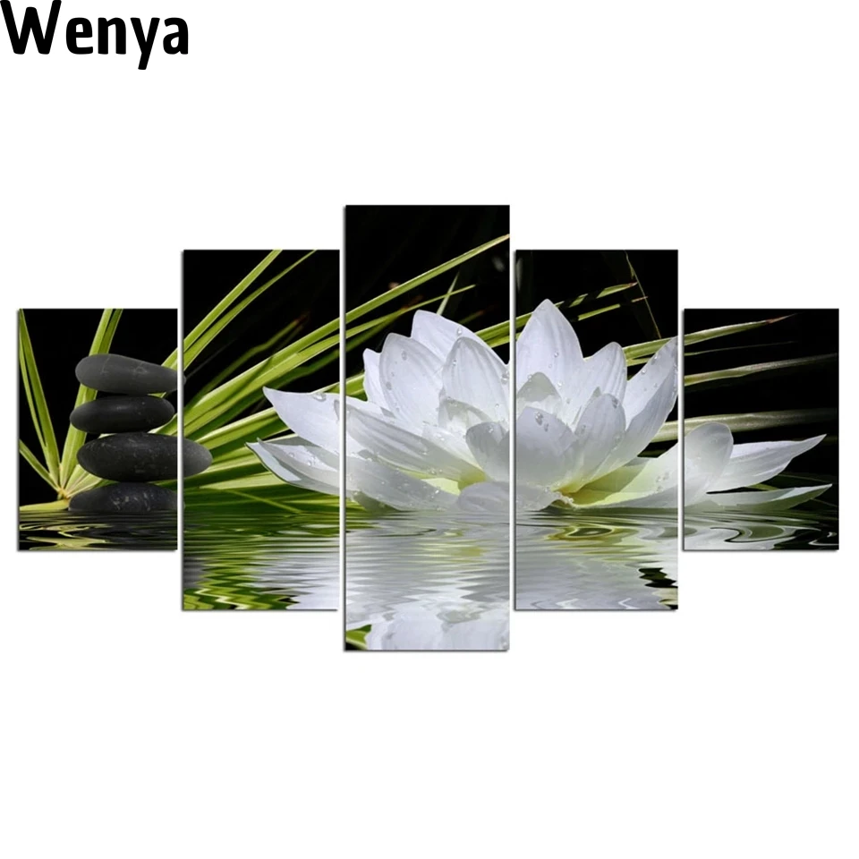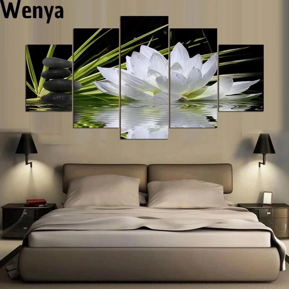 Современное домашнее художественное украшение для стен модульные картины 5 шт. Белый Лотос цветок водяной булыжник HD напечатанные на холсте картины