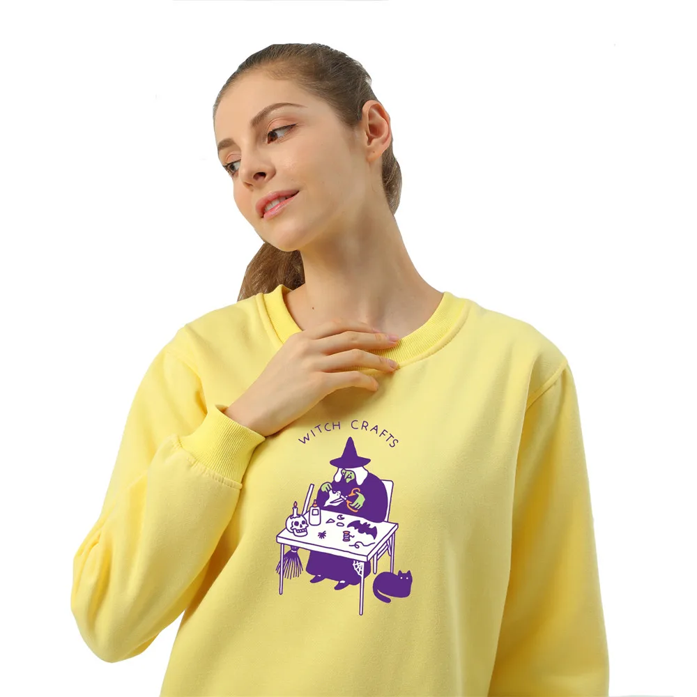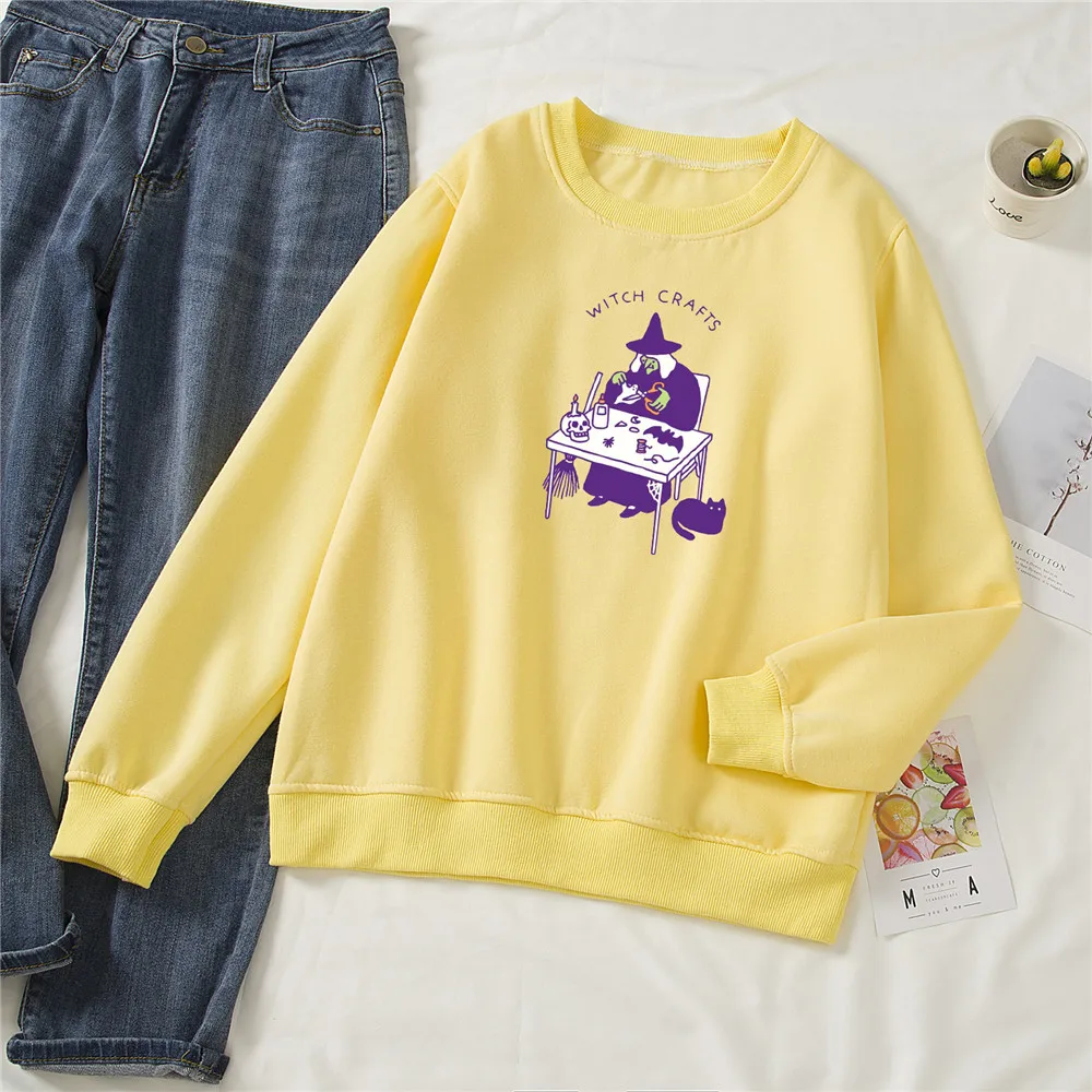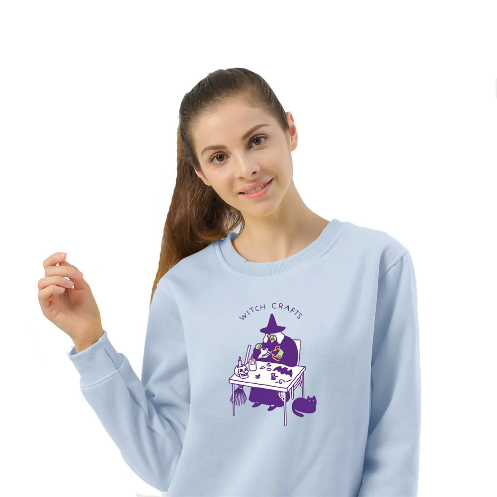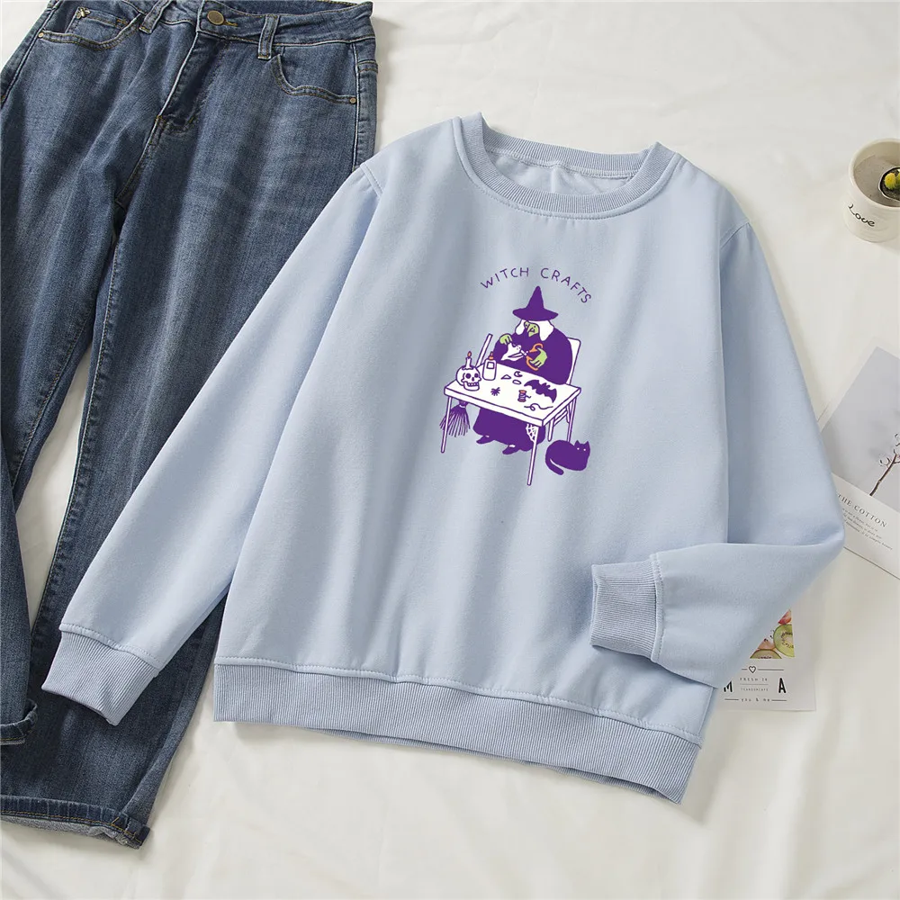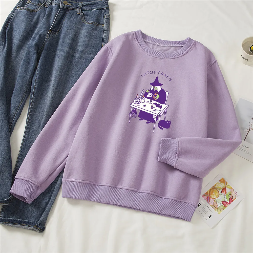 Свитер с круглым вырезом, винтажные пуловеры, толстовки большого размера, Женский свитшот в стиле Харадзюку, готический свитшот в стиле панк, топ с принтом ведьмы в стиле Готика