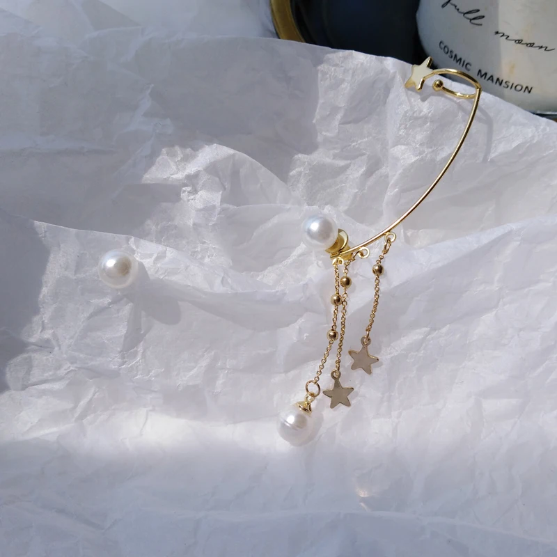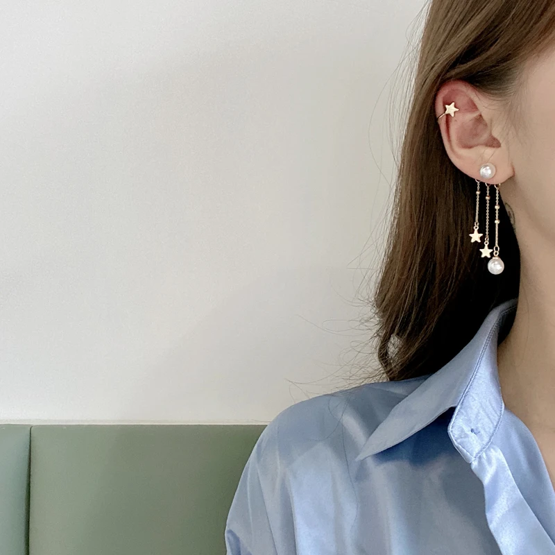 S925 модные серьги с имитацией жемчуга, лидер продаж, серьги из металлического сплава с золотым покрытием, новые ассиметричные серьги со звездой, подарки