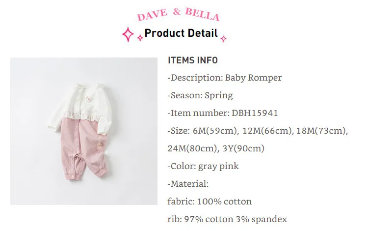 Комбинезон Дэйв Белла DBH15941 для новорожденных девочек, Модный комбинезон в стиле пэчворк, Одежда для младенцев, детский комбинезон, 1 шт.