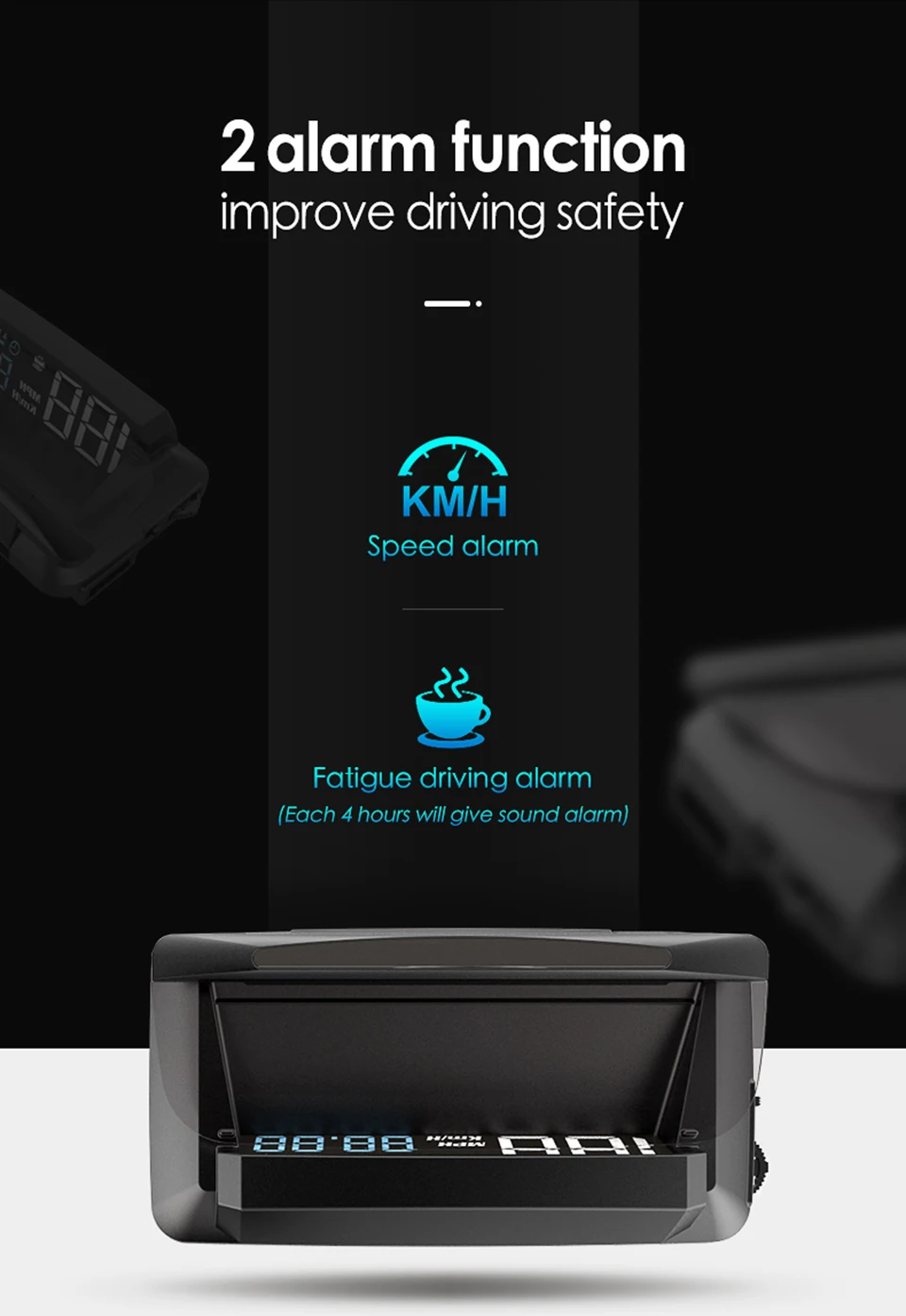 1. Изображение отражения, без привидения без съемок. Дисплей очень четкий в течение дня2. Скорость может быть переключена на км и миль в час3. Дизайн формы более красивый и текстурированный4. При переключении на MPH в час расстояние, пройденное в одной поездке, будет автоматически переключено на милю