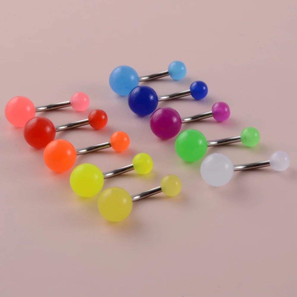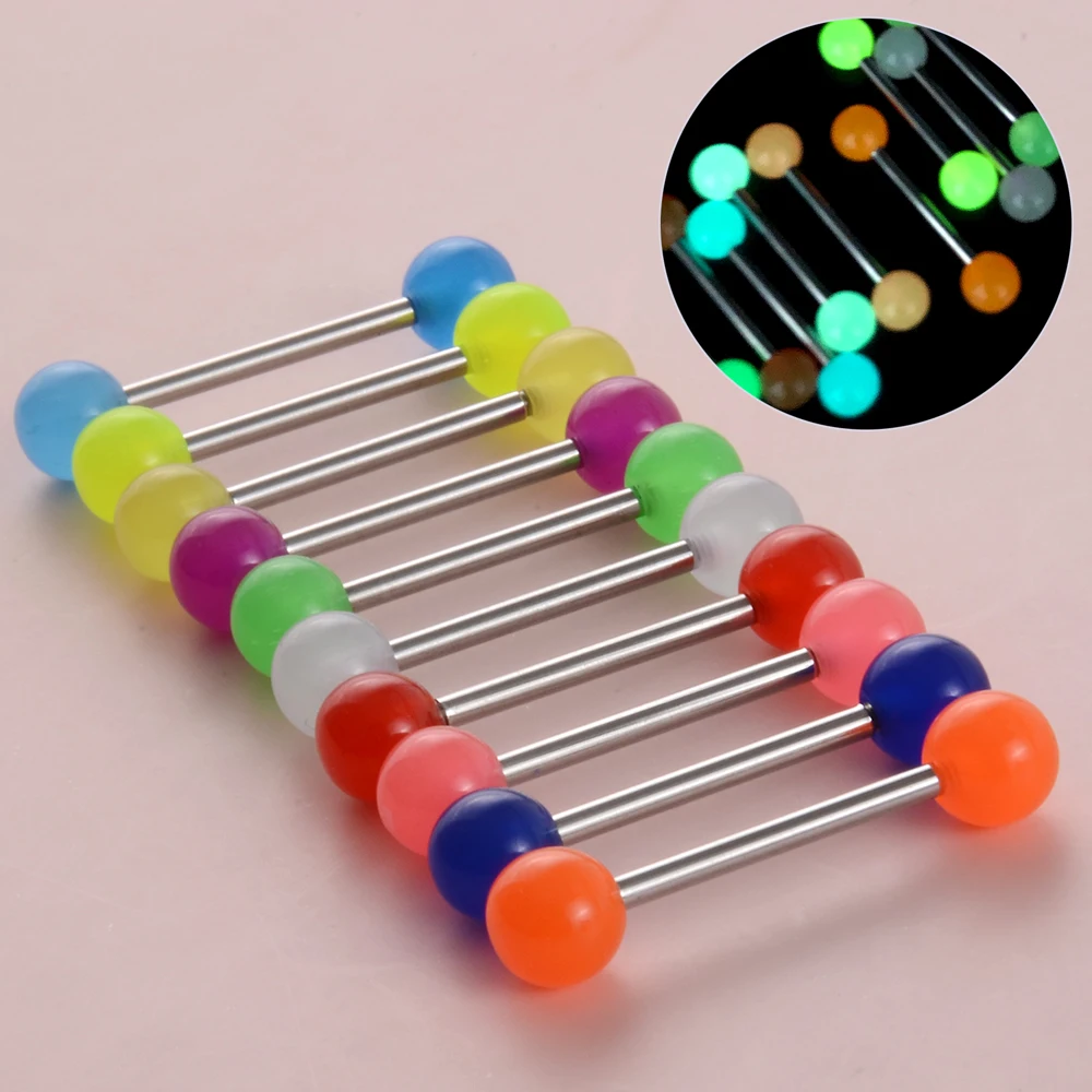 Пирсинг для пупка, штанга прямая, серьга на язык, 10 шт., 14 г, разноцветные, светящиеся в темноте, украшения для тела