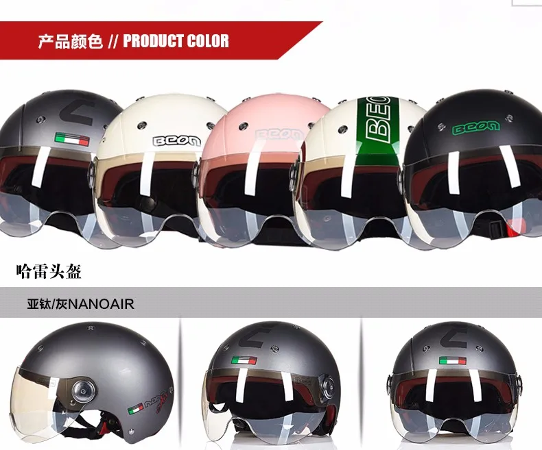 Мотоциклетный полулицевой шлем BEON унисекс, винтажные шлемы с открытым лицом для электрического велосипеда, скутера, Размеры M L XL