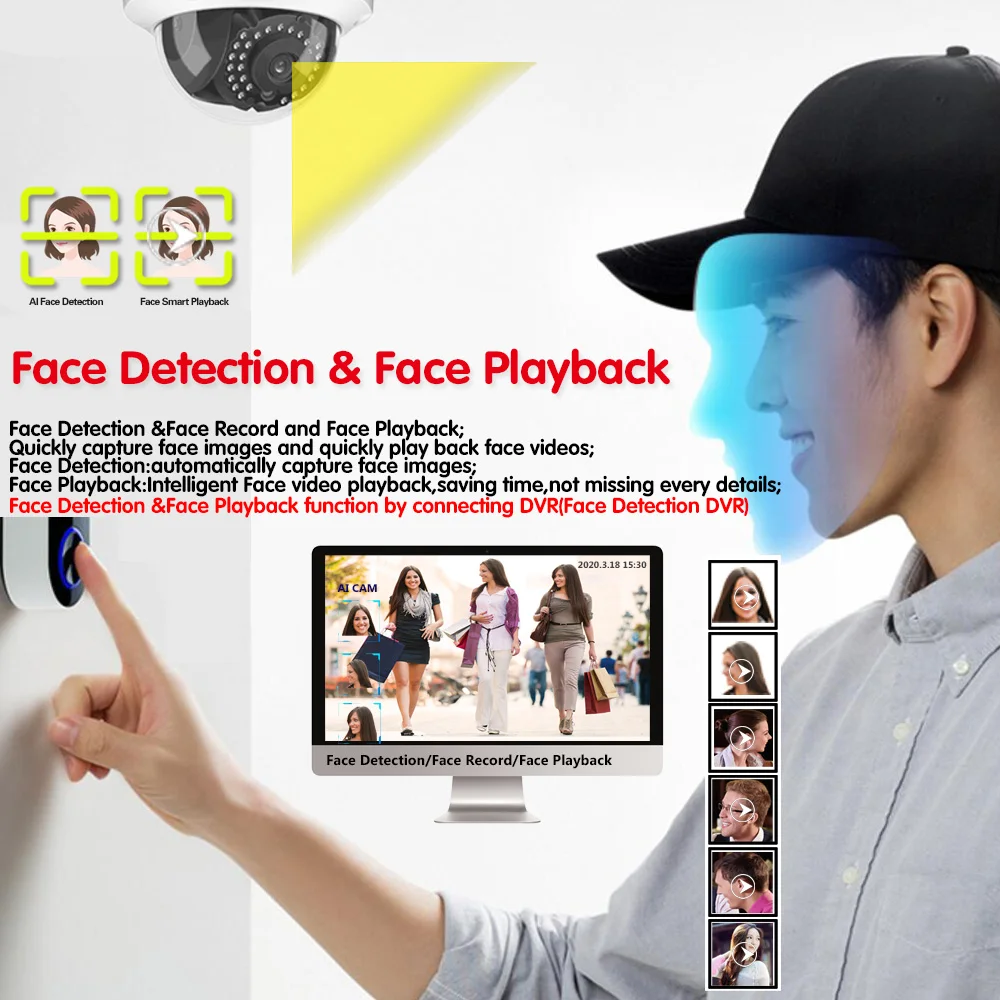 Функция распознавания лиц и воспроизведения лица при подключении AHD DVR(AHD DVR должна быть функция распознавания лиц)!