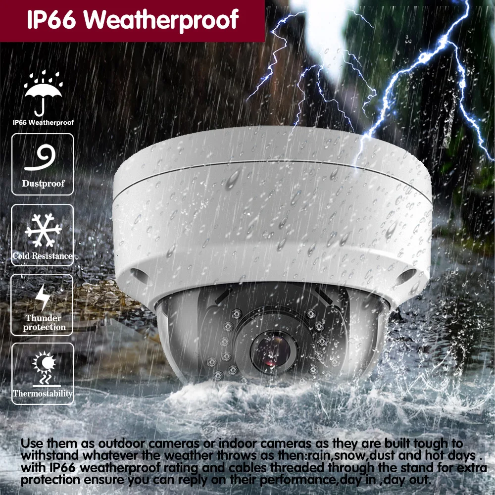 Используйте их в качестве наружных камер или внутренних камер, так как они построены жестко, чтобы выдерживать любую погоду: дождь, снег, пыль и жаркие дни. С защитой от атмосферных воздействий IP66 и кабелями, проходящими через подставку для дополнительной защиты, гарантируем, что вы сможете ответить на их производительность, день в день.Наша камера имеет сверхпрочный металлический корпус, профессиональный IP66, устойчивый к атмосферным воздействиям, обеспечивая стабильную производительность как внутри, так и снаружи.