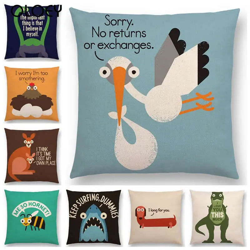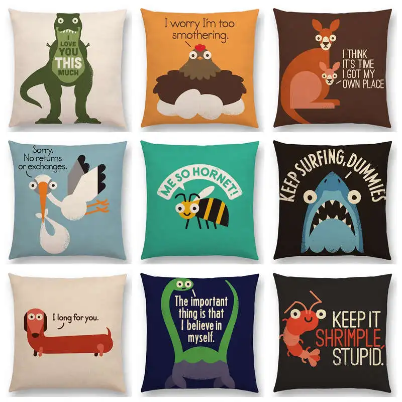Смешные Мультяшные животные диван наволочка динозавр кенгуру пчела такса Акула декоративный чехол
