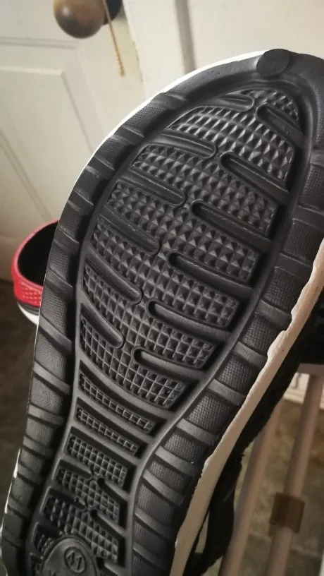 Обычные резиновые сандалии. Задник крашеный, не очень аккуратно, но не критично. Есть лёгкий запах.