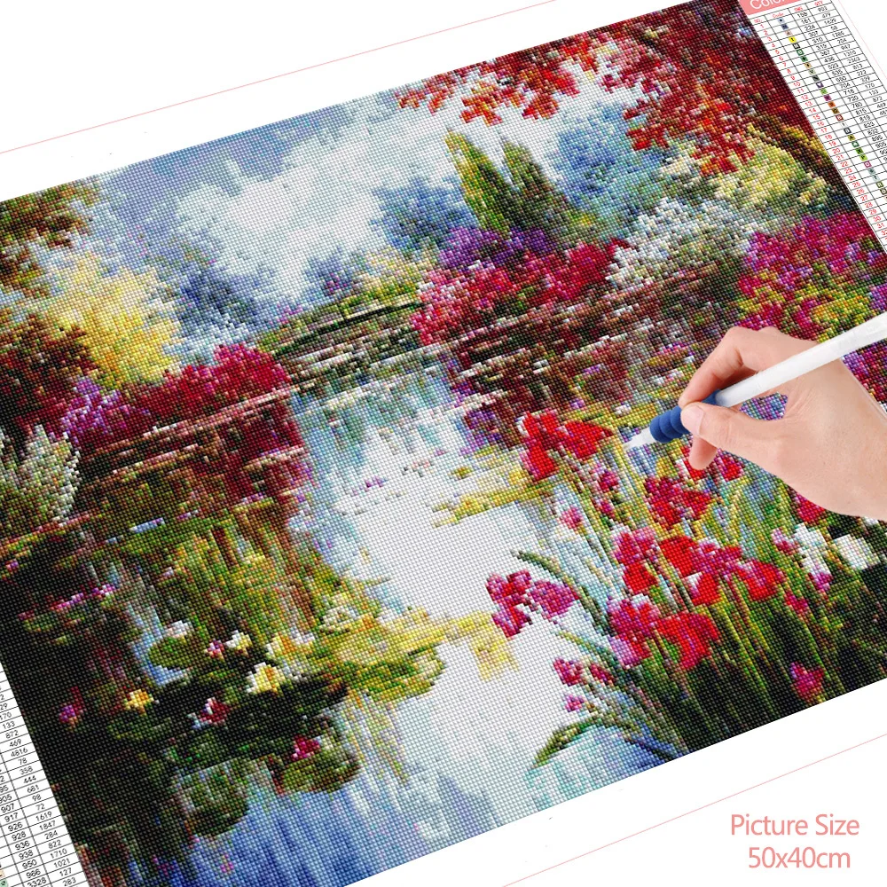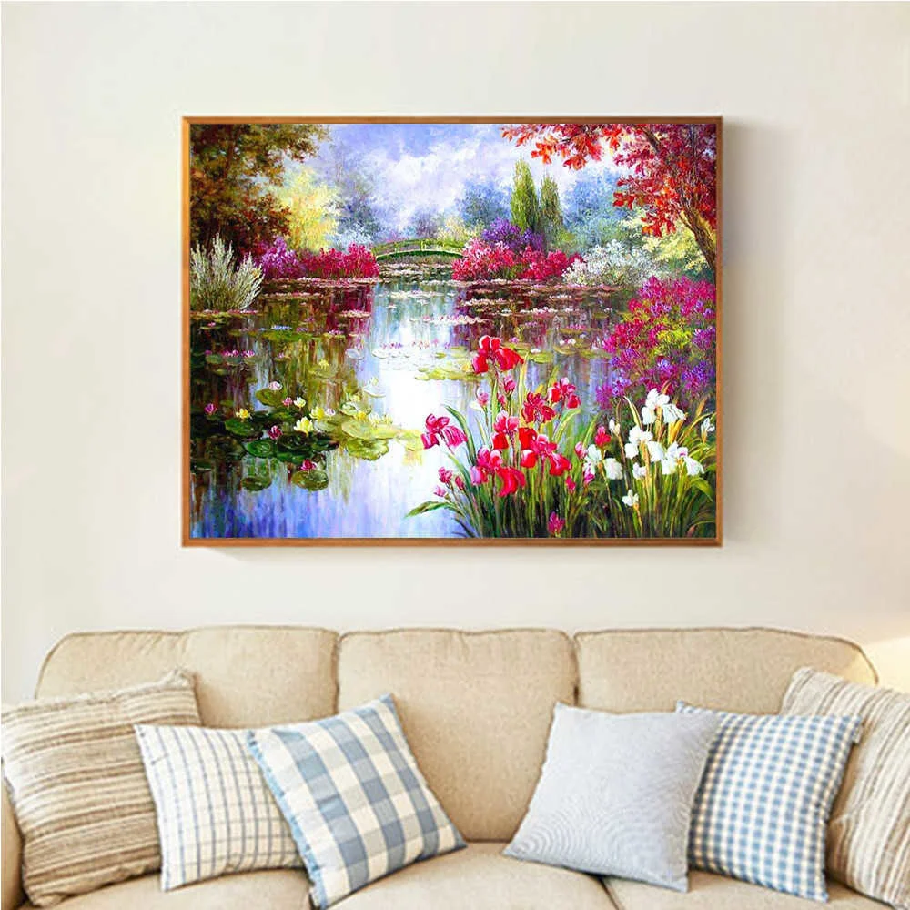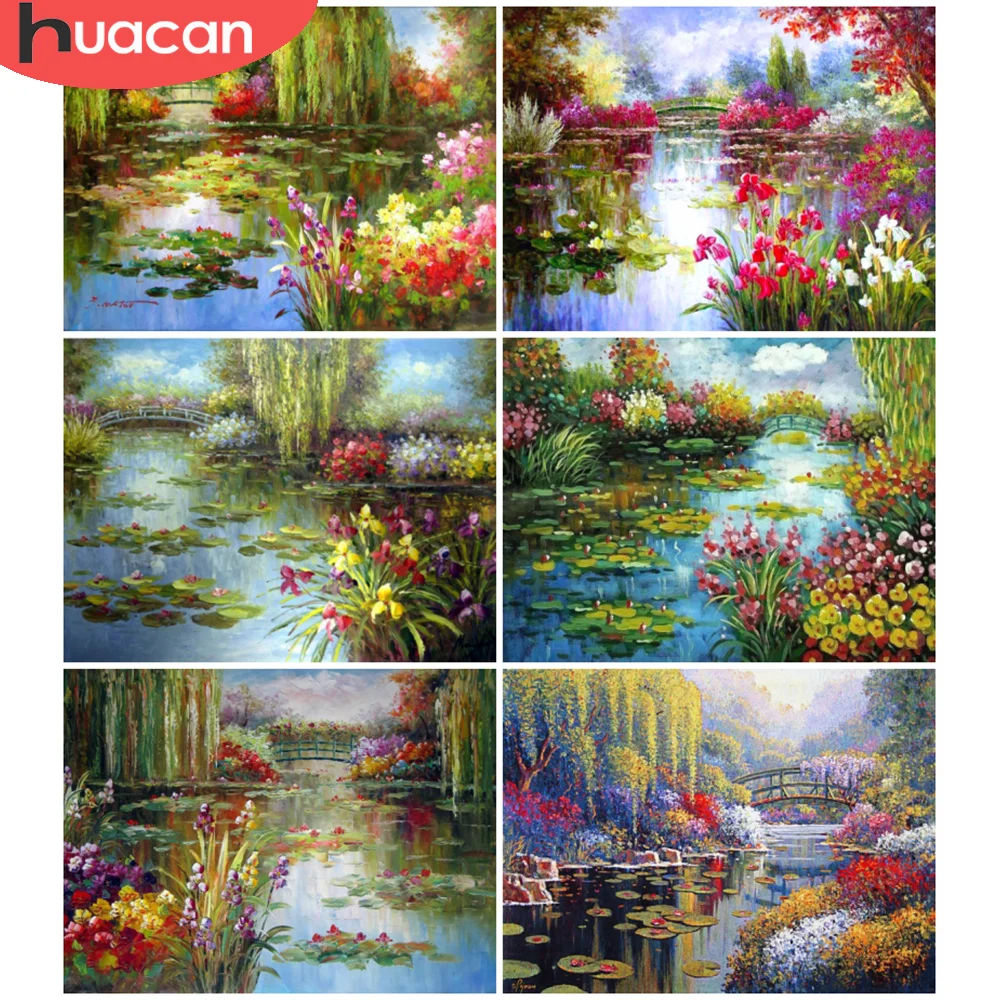 Алмазная 5d-картина HUACAN, украшение для дома с изображением озера, пейзажа, Летняя Мозаика, украшение для дома