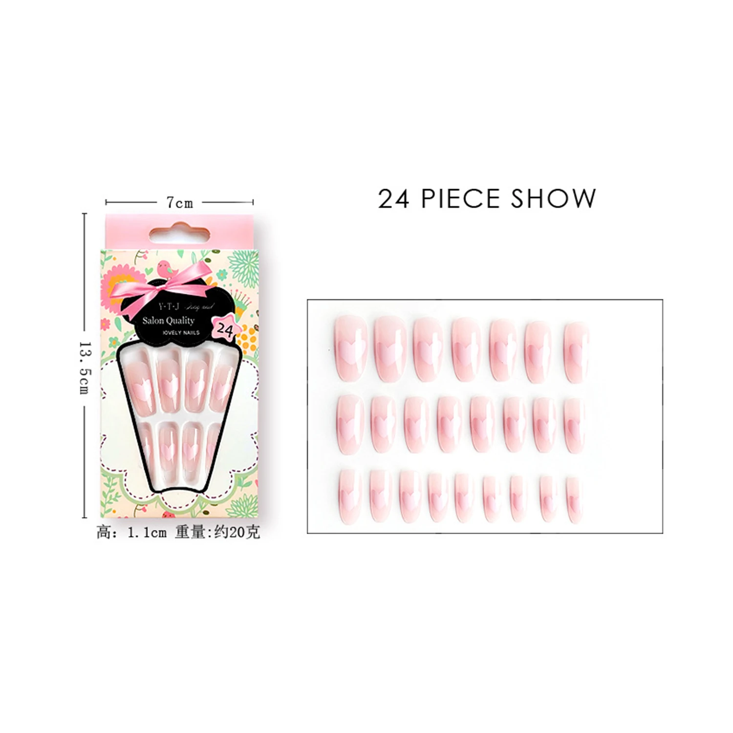 24 шт. накладные ногти розового цвета с персиковым рисунком сердца ...