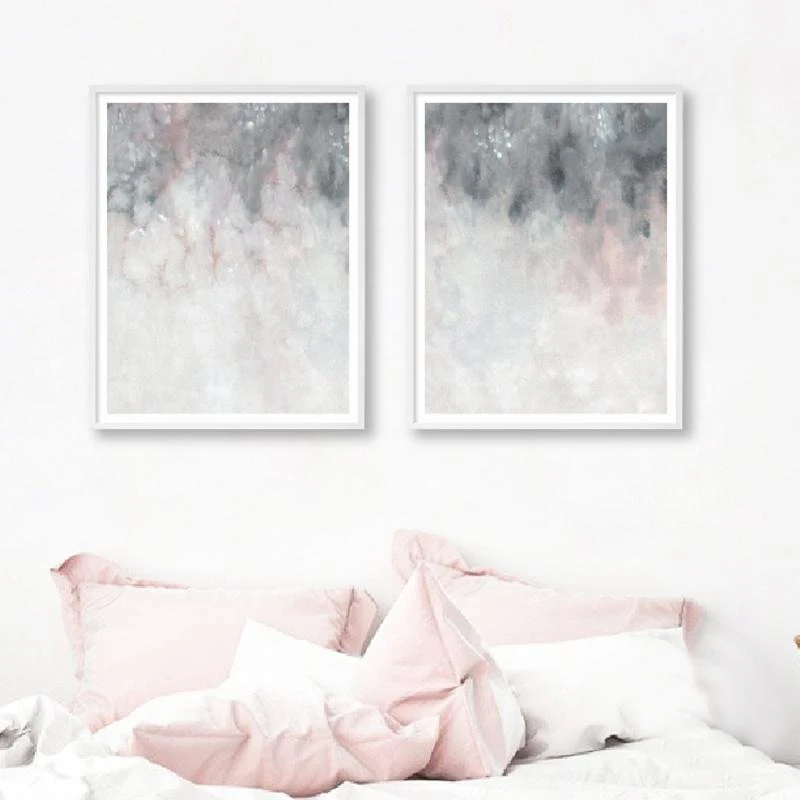 Серый Белый Абстрактная живопись холст картины Украшения в спальню Румяна розовогосерого цветов художественные плакаты и принты настенные картины Современное украшение для дома