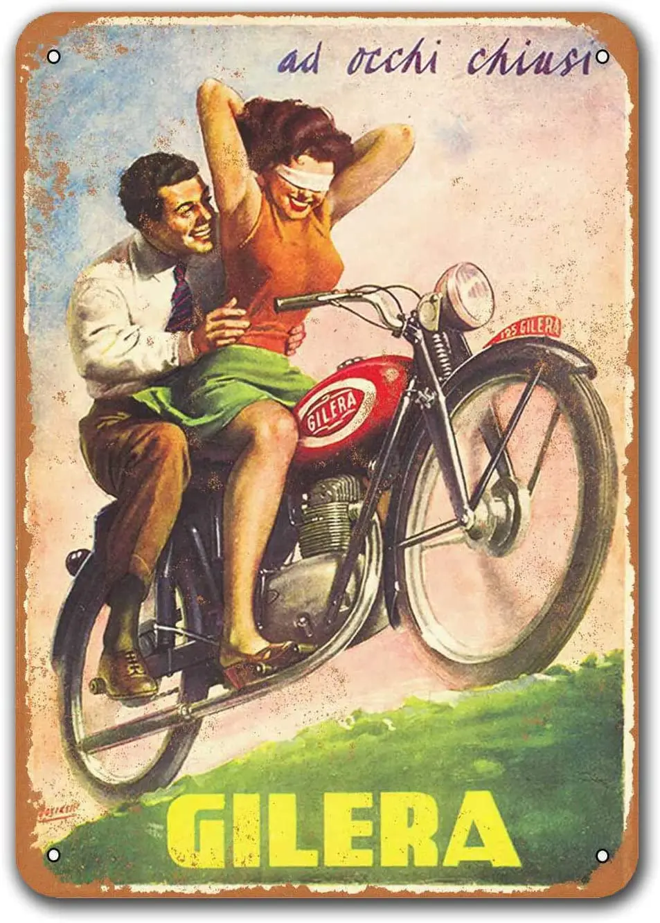 Жестяной знак Gilera для мотоциклов и старых автомобилей, винтажный металлический плакат Sisoso для гаража, мужской пещеры, Ретро Декор для стен 8x12 дюймов, 1949