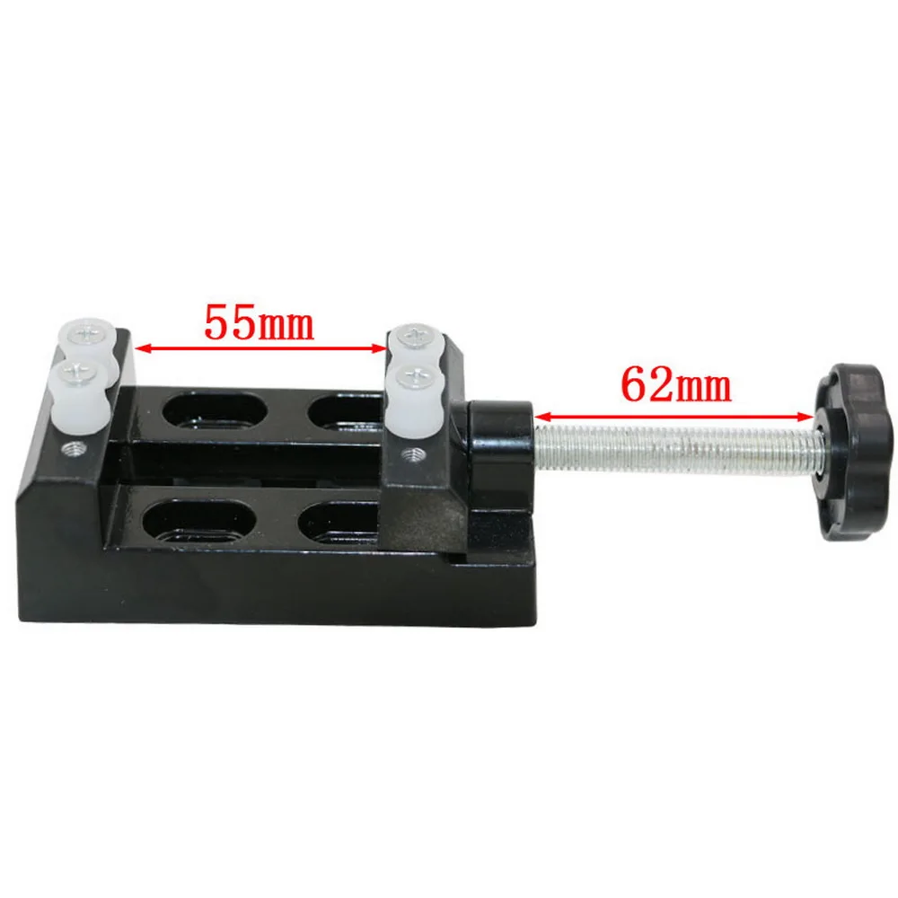 Размер: 106*60*35 ммЦвет: черныйМатериал: алюминиевый сплавДиапазон зажима: 0-55 мм (0-2 дюйма)Набор винтов: случайный цвет