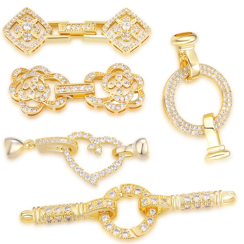 Застежки-крючки для изготовления ювелирных изделий, из латуни, с фианитом, золотые, аксессуары для ожерелья и браслета, 2021