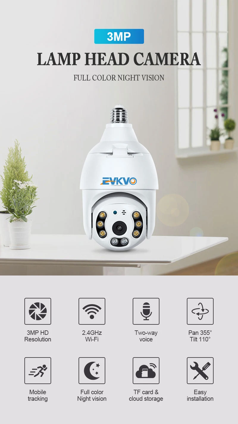 Ламповая камера E27, 3 Мп, система видеонаблюдения, Wi-Fi, вращение...