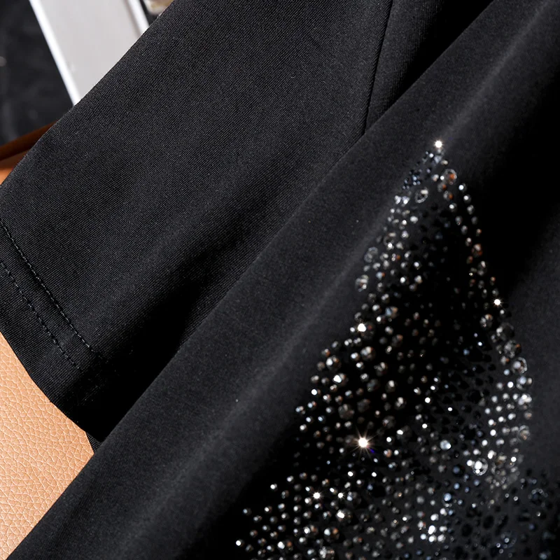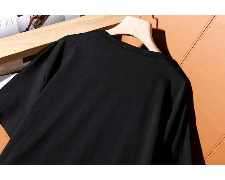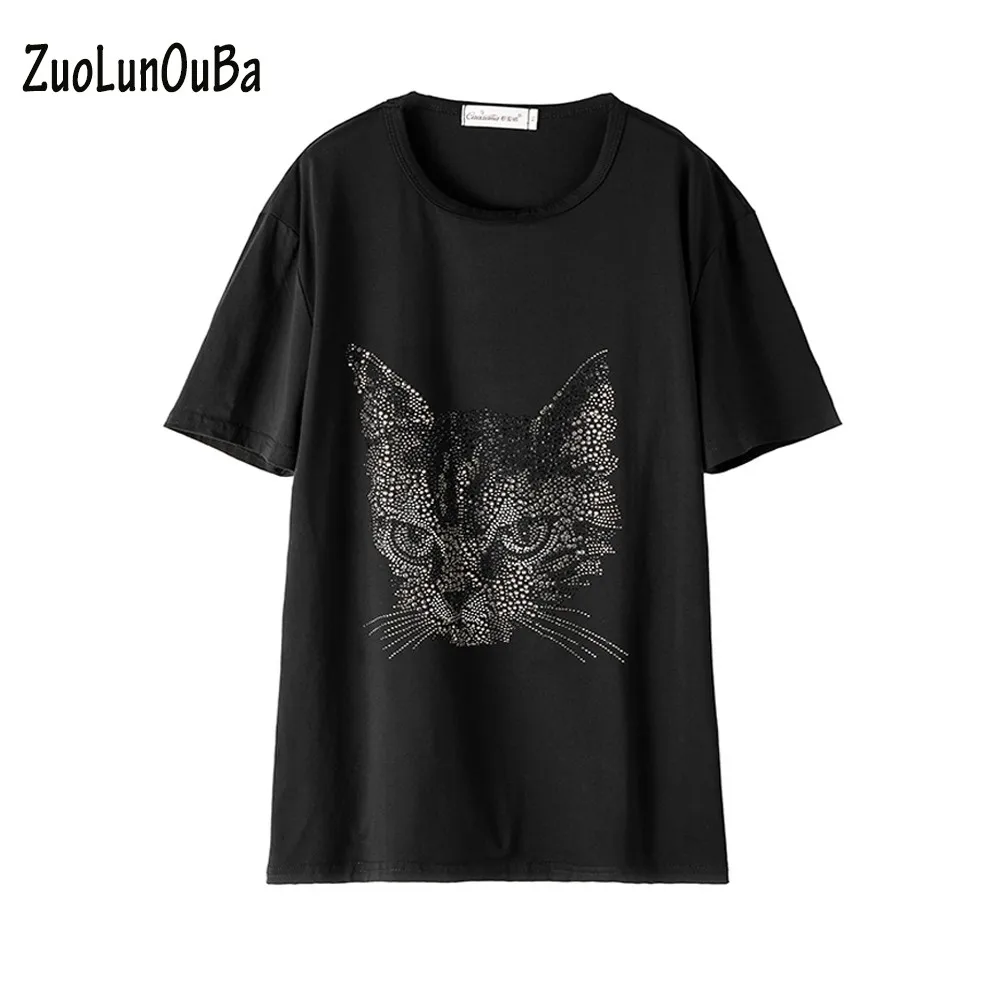 Футболка ZuoLunOuBa женская с коротким рукавом, модный Свободный Топ с черными стразами и злым котом, на лето