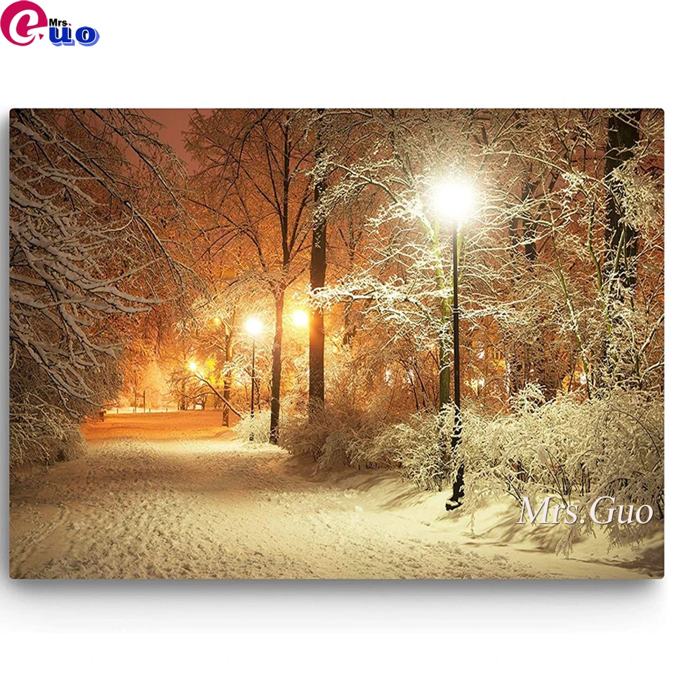Алмазная живопись 5D сделай сам пейзаж Луна Дерево Стразы искусство...