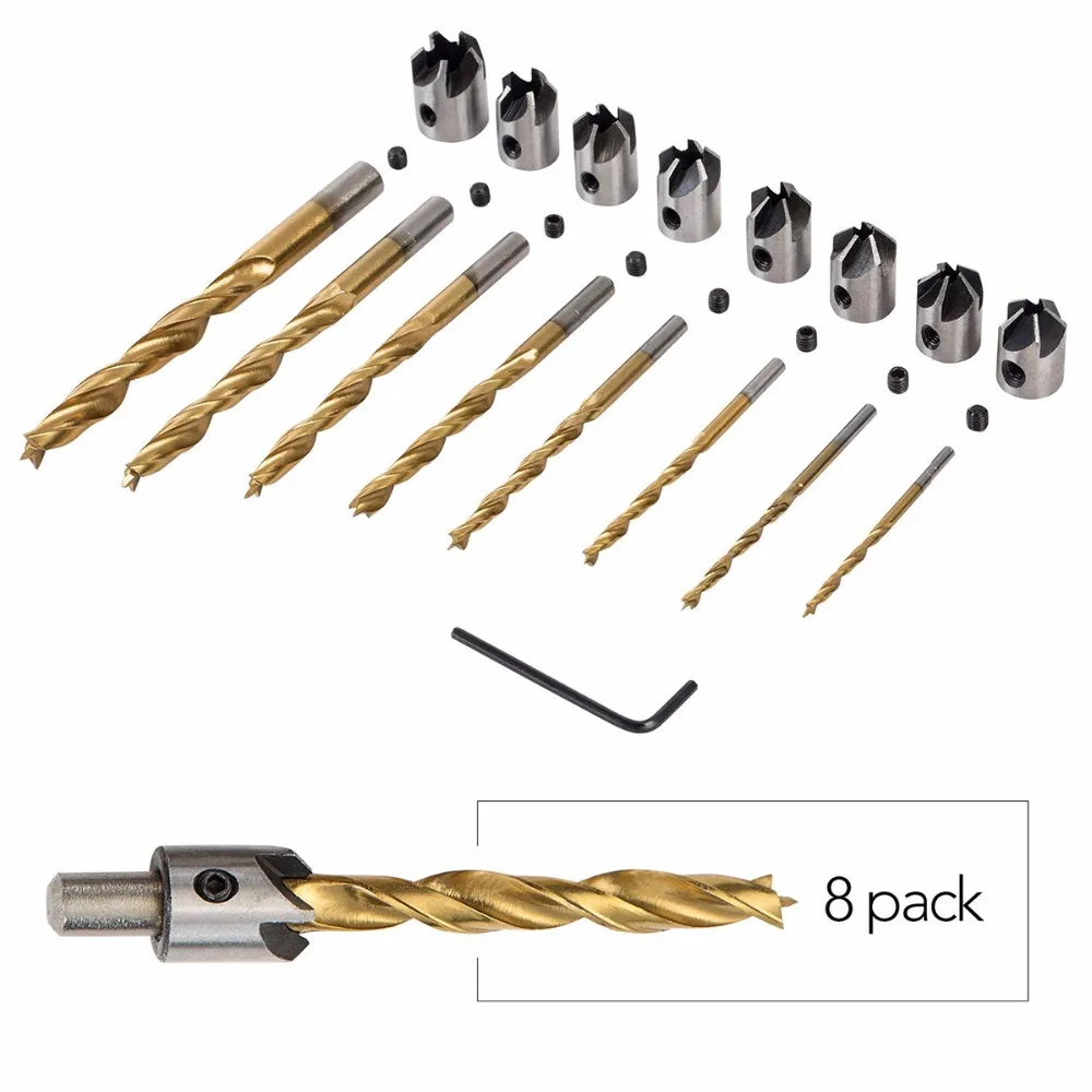 3-10 мм 47 шт. Круглый хвостовик с титановым покрытием HSS зенкер для столярных работ фаска сверло для деревообработки с шестигранным L-ключом
